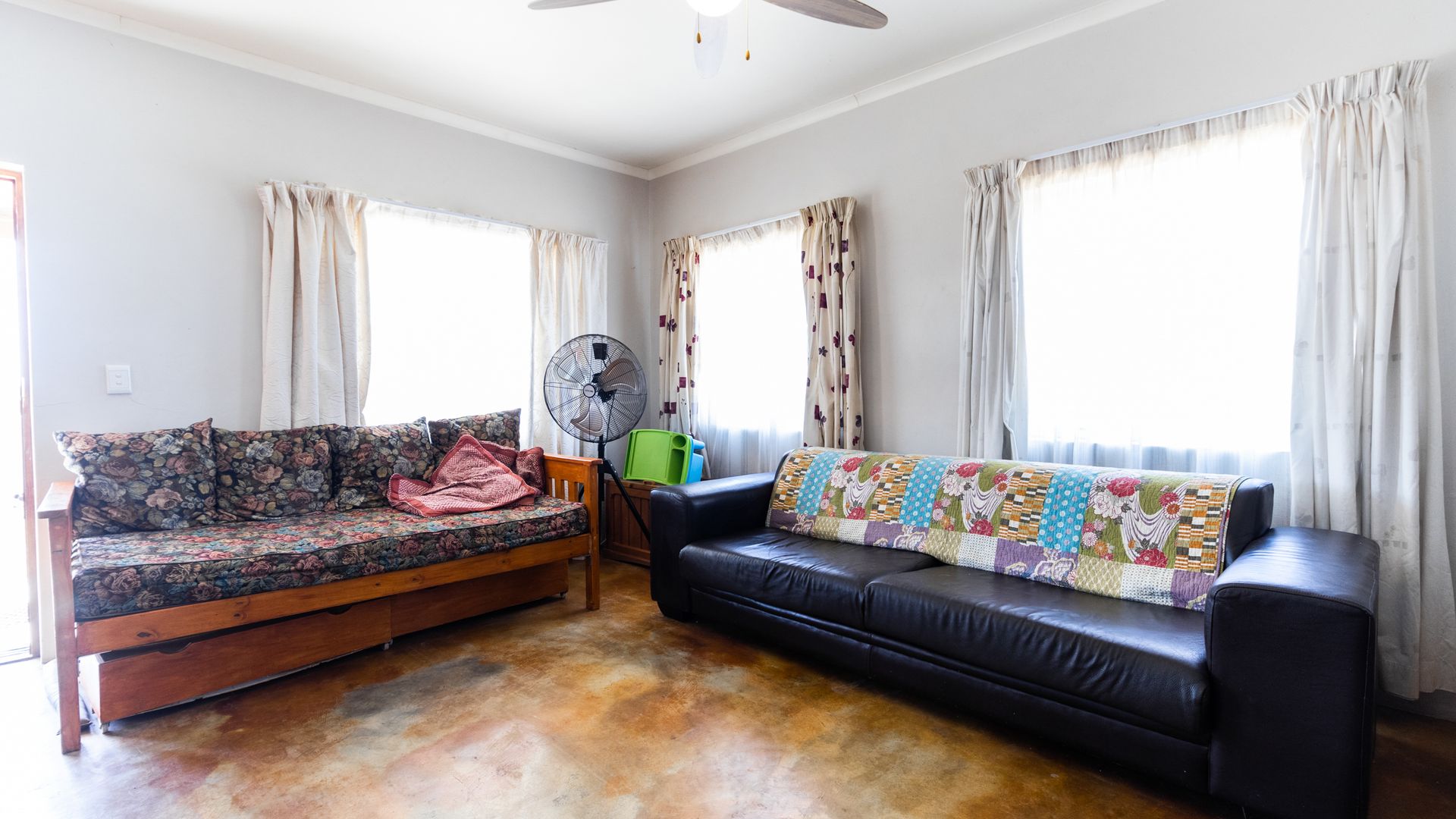 It features 3 spacious bedrooms, each with built-in cupboards, and 2 bedrooms come with en-suite bathrooms for added privacy. A separate extra bathroom is also available. The kitchen, living, and dining areas flow seamlessly into each other, creating an ideal space for entertaining. The kitchen includes a convenient scullery for extra storage.