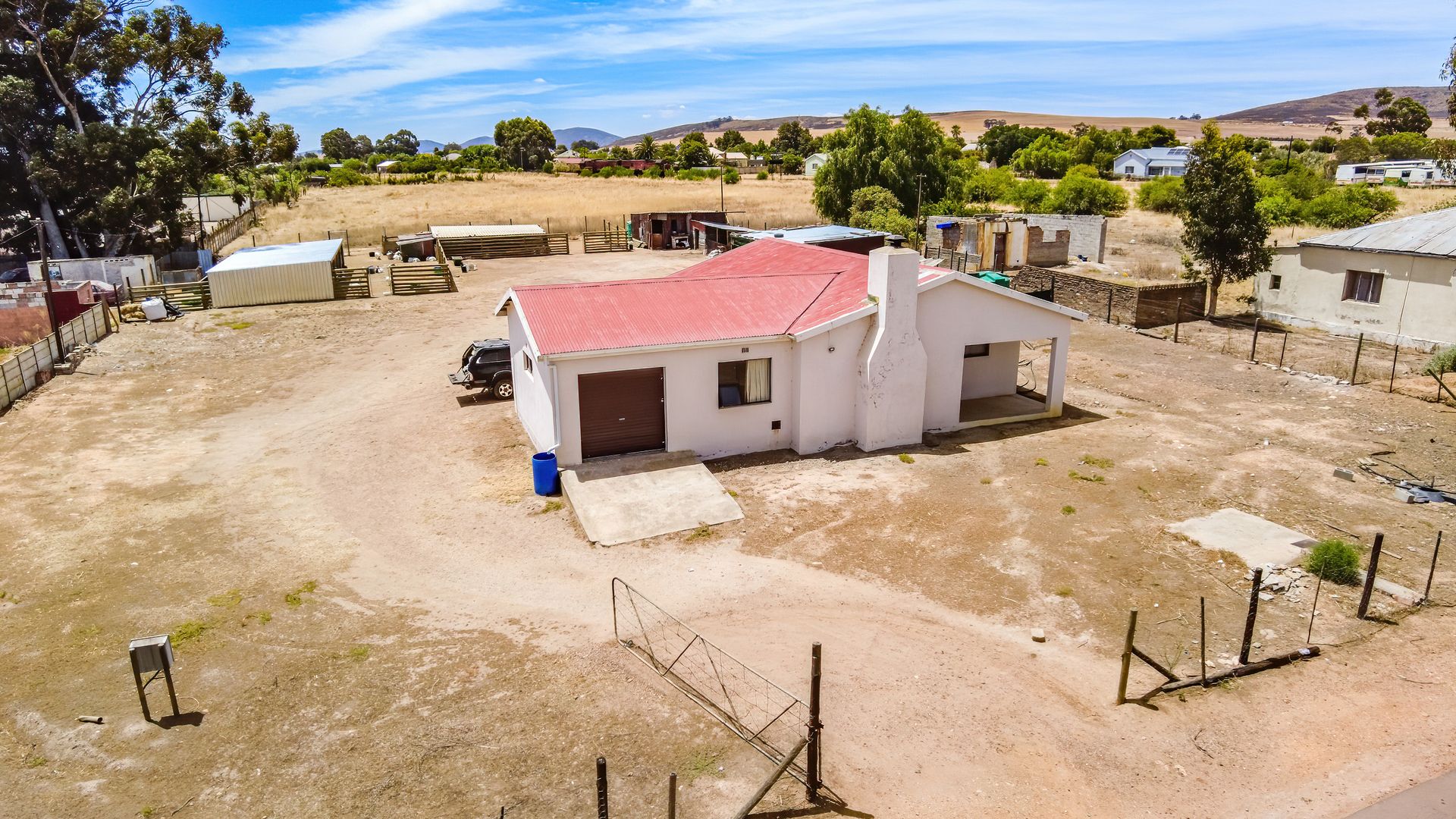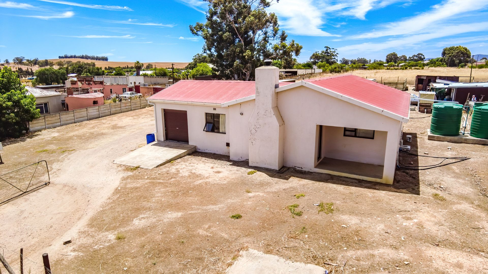 Water security is a major highlight, with a reliable borehole complemented by generous water storage, including two 5,000-litre tanks and one 2,500-litre tank, ensuring peace of mind throughout the year. Outdoors, the property caters well to small-scale farming or homestead living, featuring a well-constructed chicken coop and an animal shed suitable for livestock or storage.