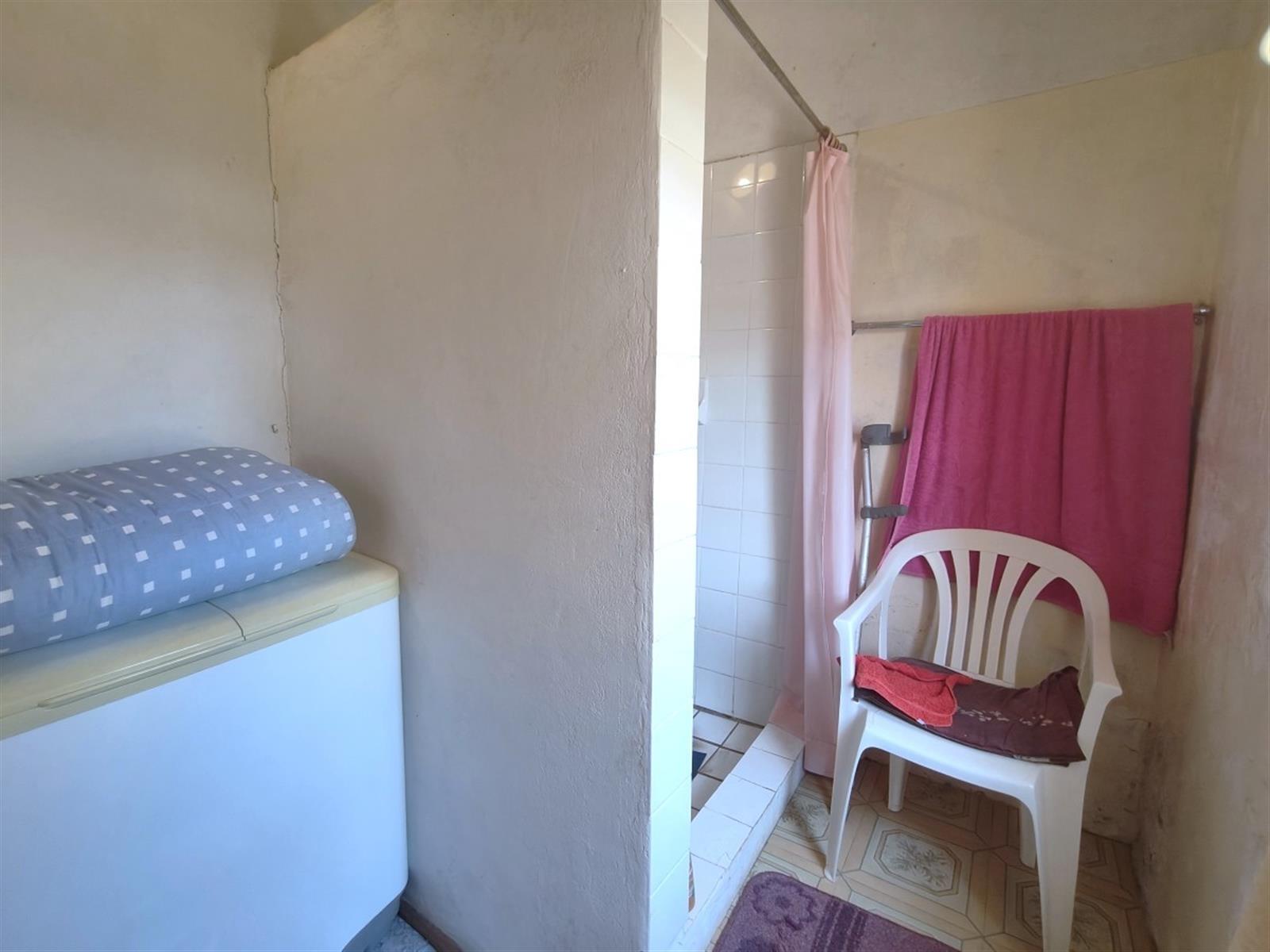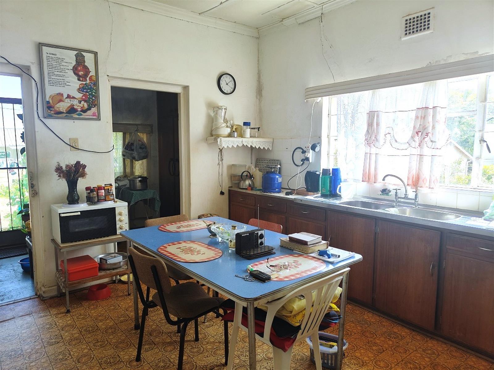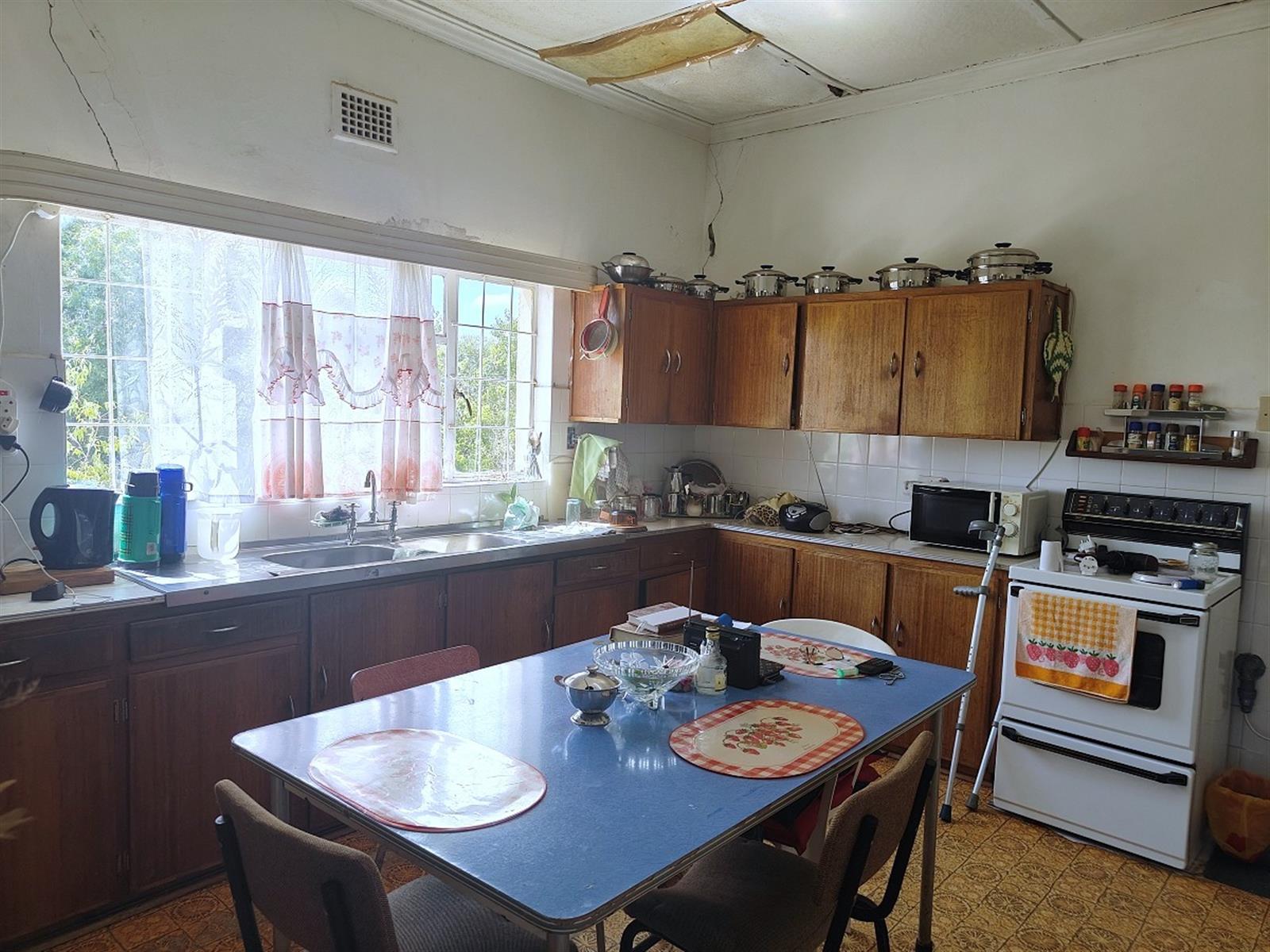 Well-sized kitchen with ample built-in cupboards and a stove. The pantry section also offering the potential to be converted into a scullary. Washing machine connection available with space for a tumble dryer and with a double basin on the enclosed back stoep. The lounge and dining area provide comfortable living space, and most windows are fitted with burglar bars.