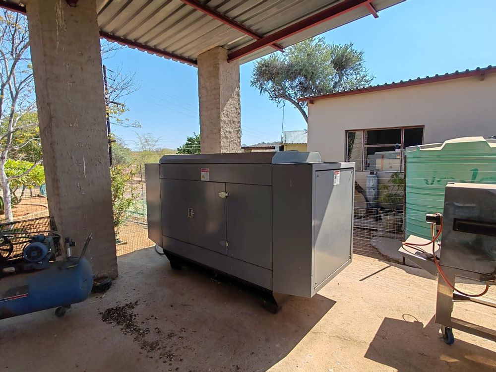 This property has a backup electrical supply from a 50 kw Genset besides the 50 kw Eskom transformer. Backup power for the houses is a 5kw inverter for the