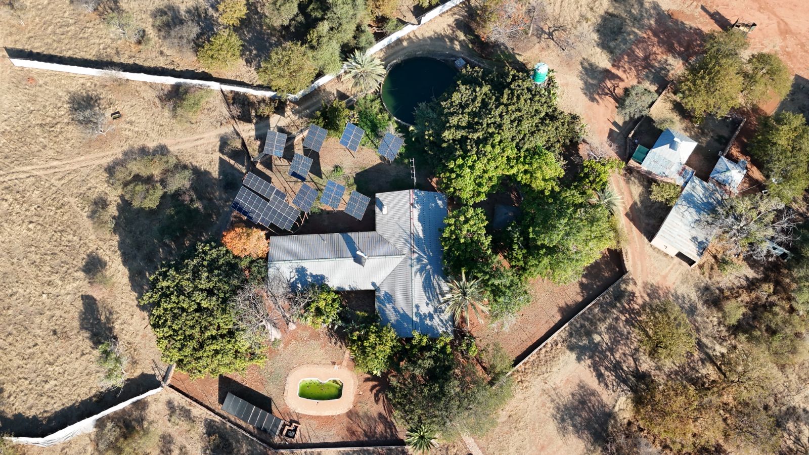 Extensive solar infrastructure powers lodges, houses, gates, and boreholes — designed for off-grid resilience