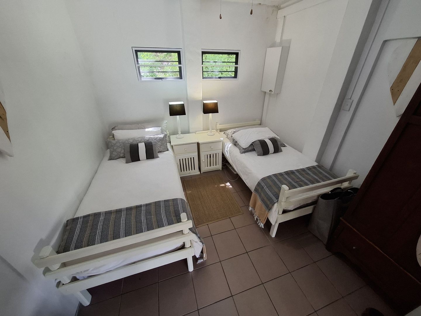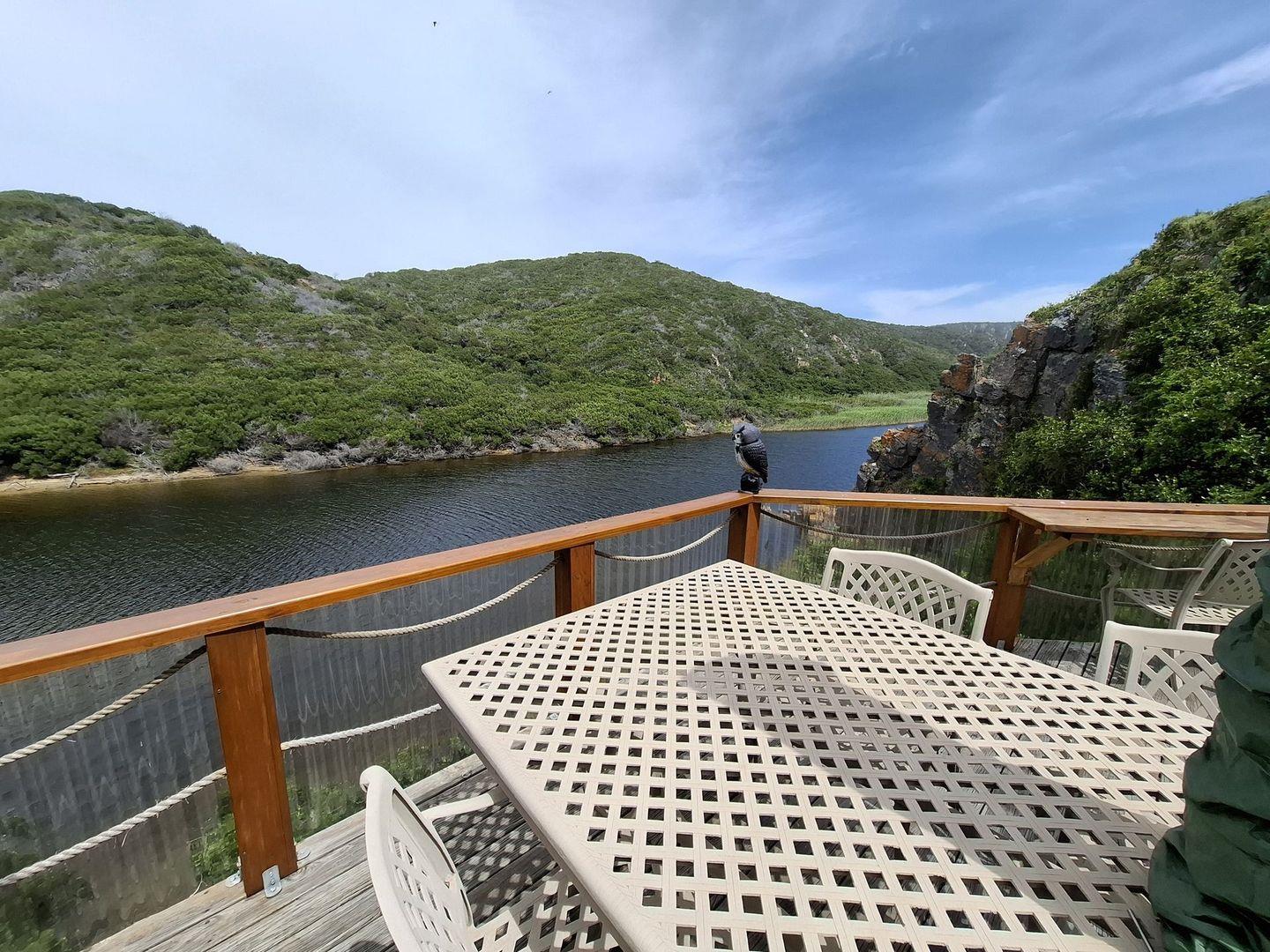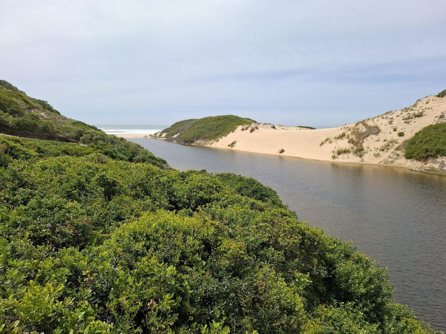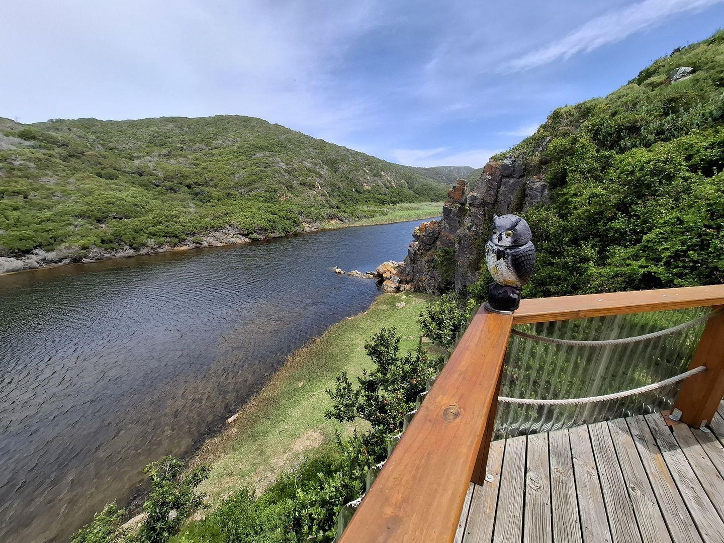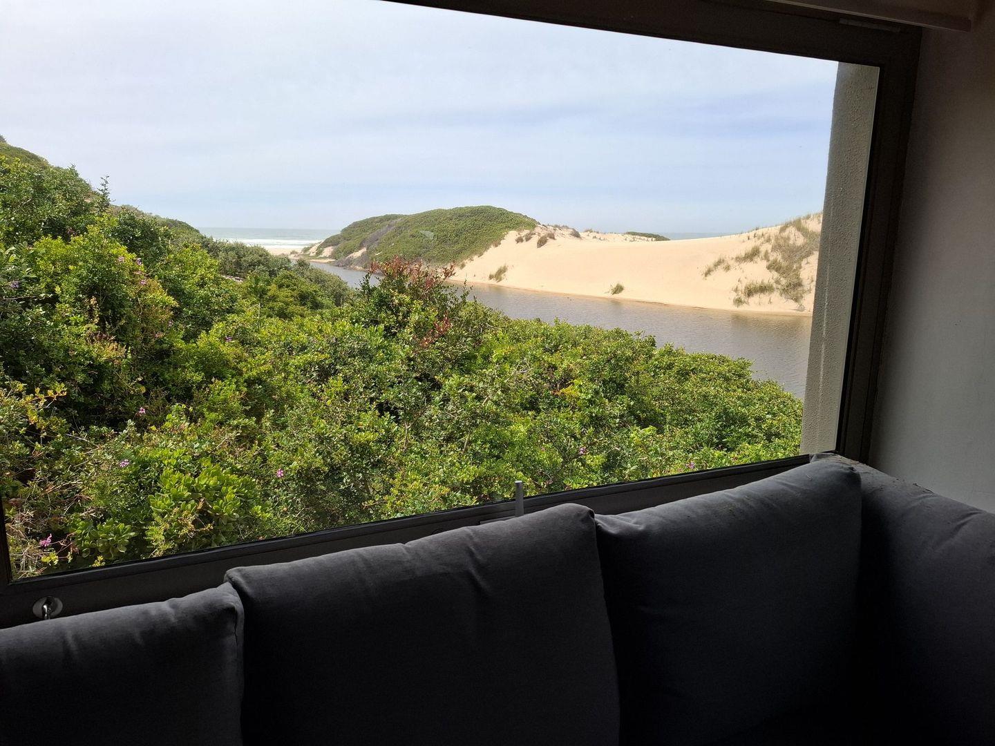 A staircase leading directly to the riverbank flanks a braai area, and a short boardwalk nearby provides access to the pristine beach