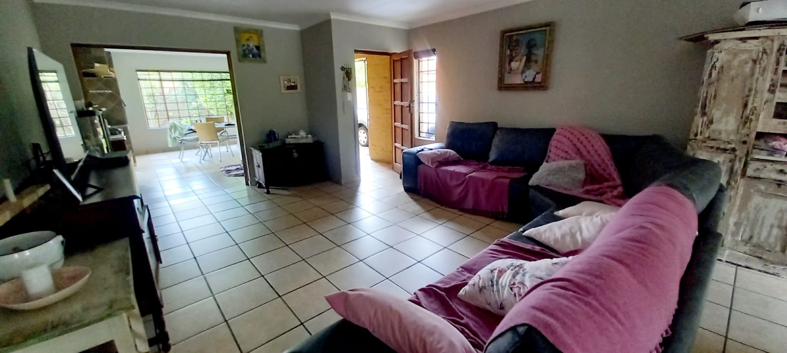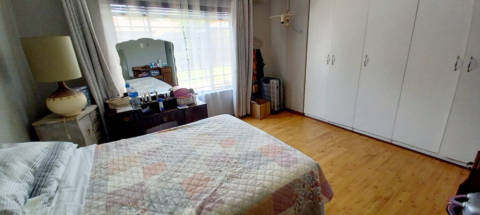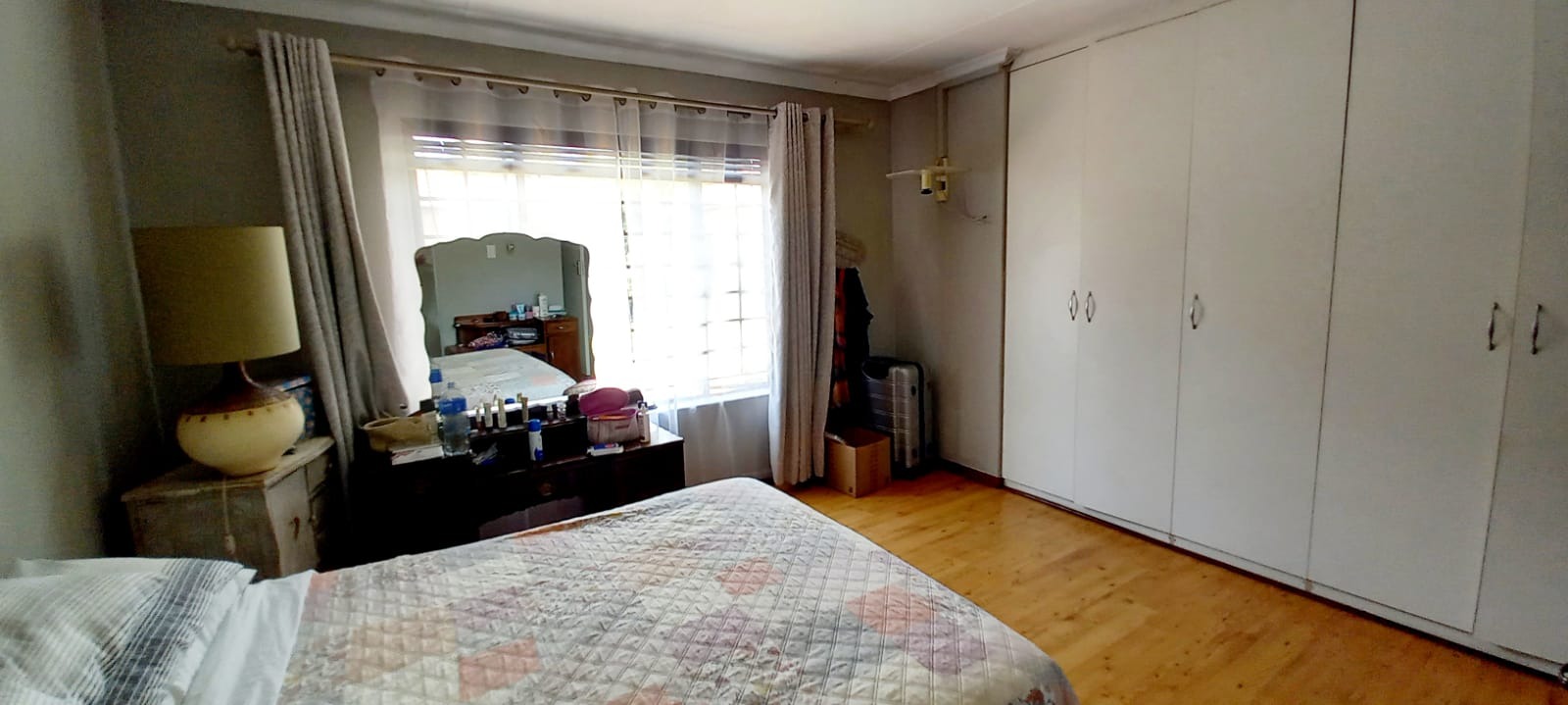 Down the passage you’re met with 3 sunny and spacious bedrooms (the two bigger rooms are fitted with air conditioners), the bathrooms PLUS a large linen cupboard.