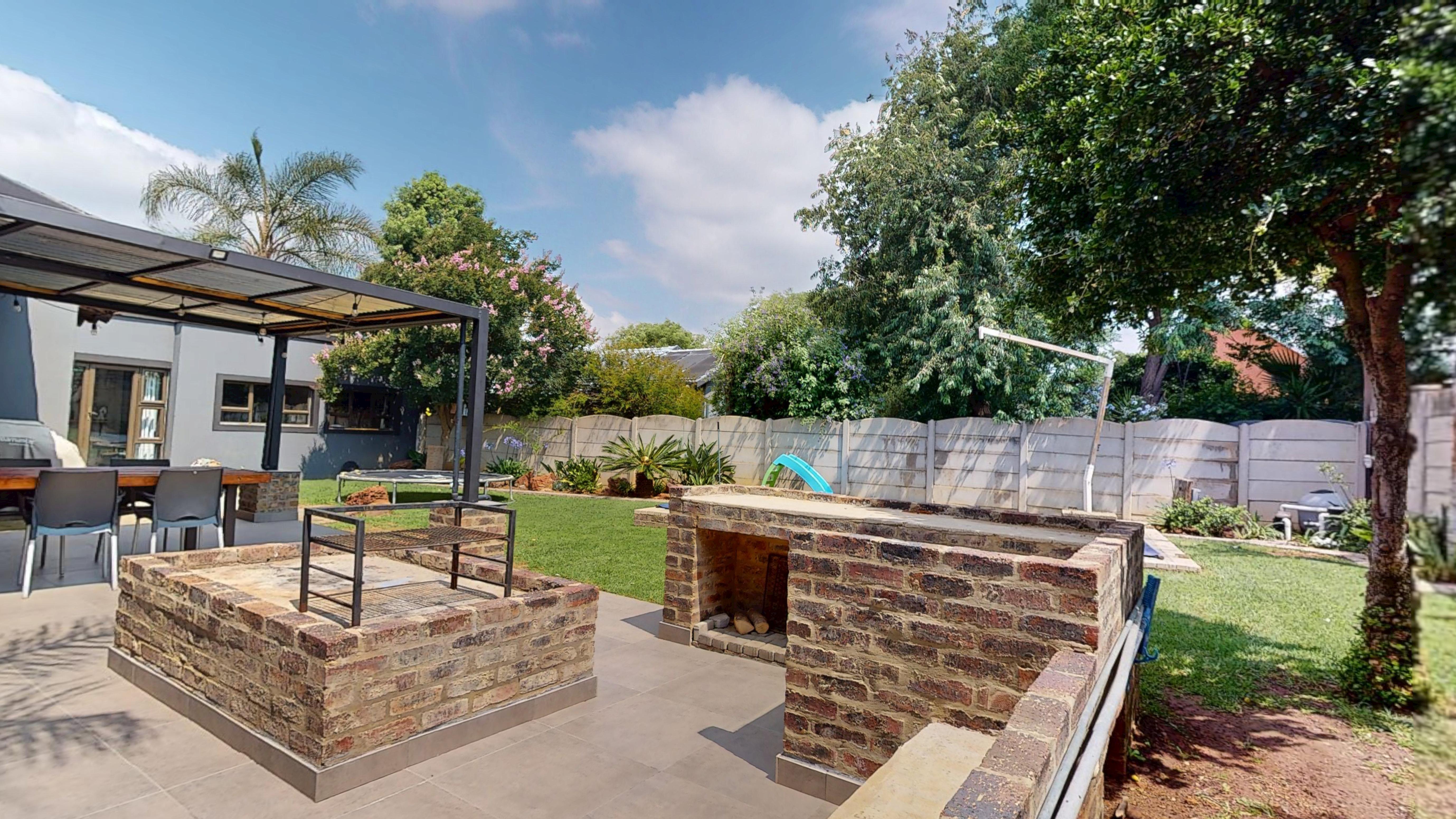 Step outside to your own private oasis. Enjoy a sparkling pool, a lovely braai area, built-in bar, and a stylish outdoor lounge, creating the perfect setting for hosting family and friends. The large wrap-around garden is beautifully maintained, offering ample space for kids and pets.