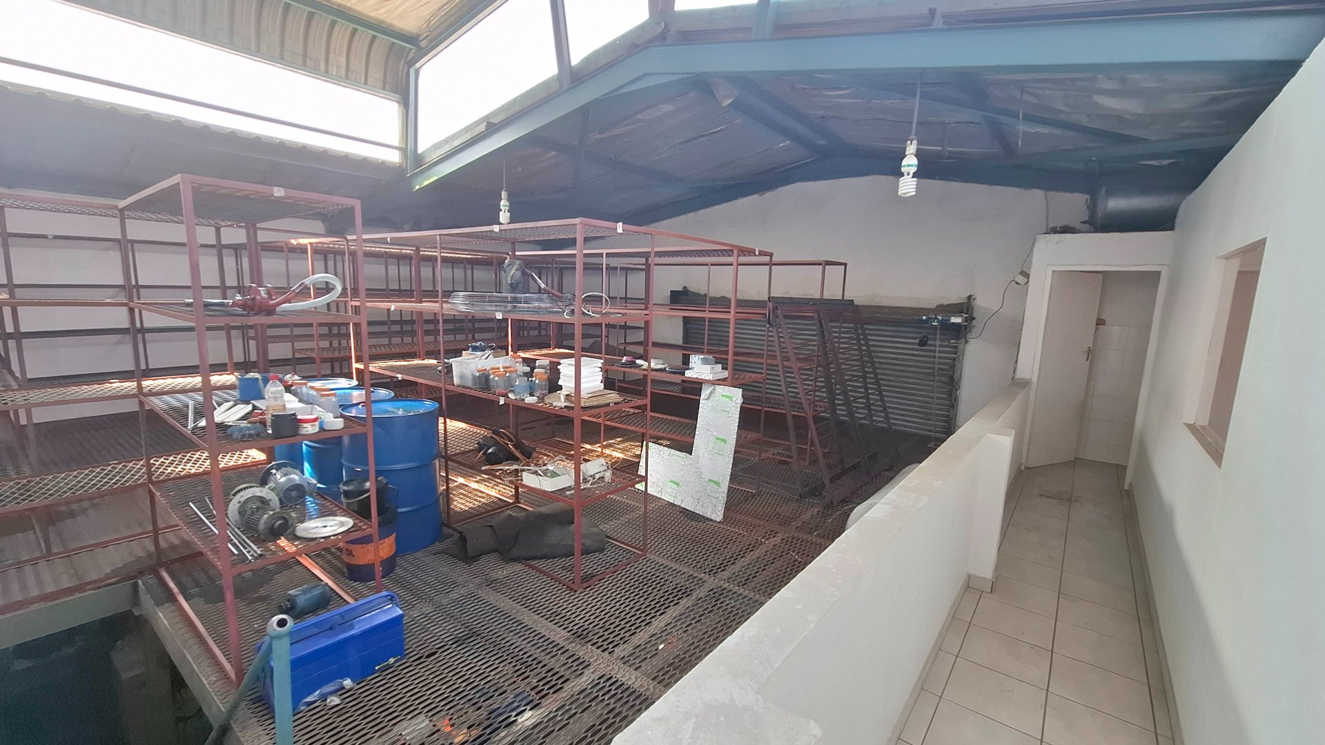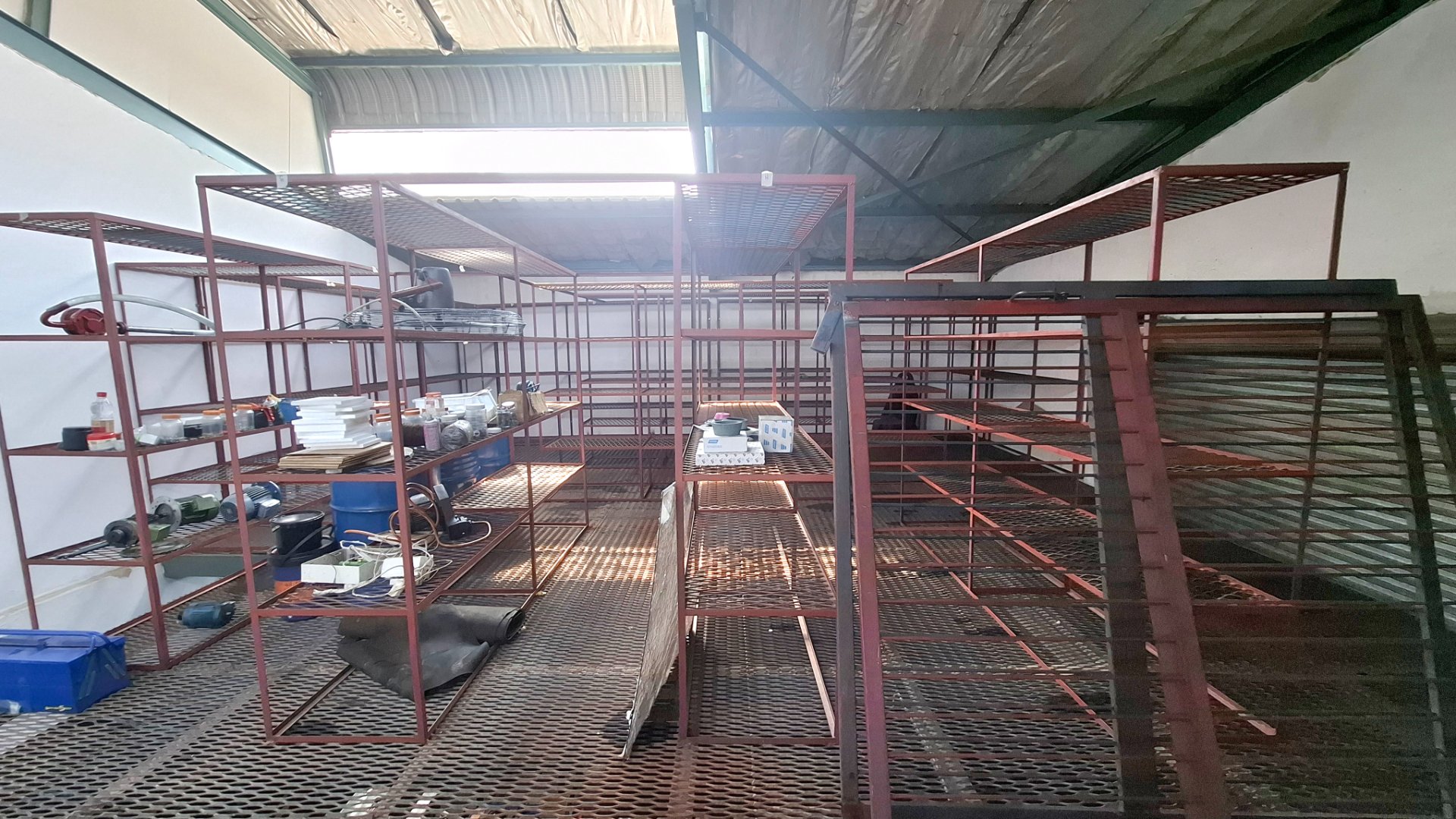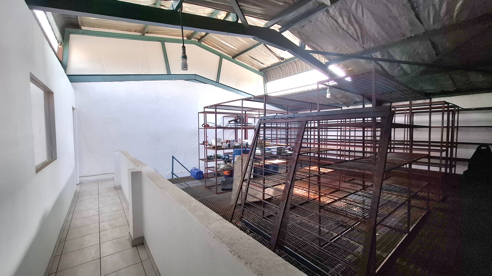 * 2nd floor, partly covered with Mezzanine, with fixed steel shelving