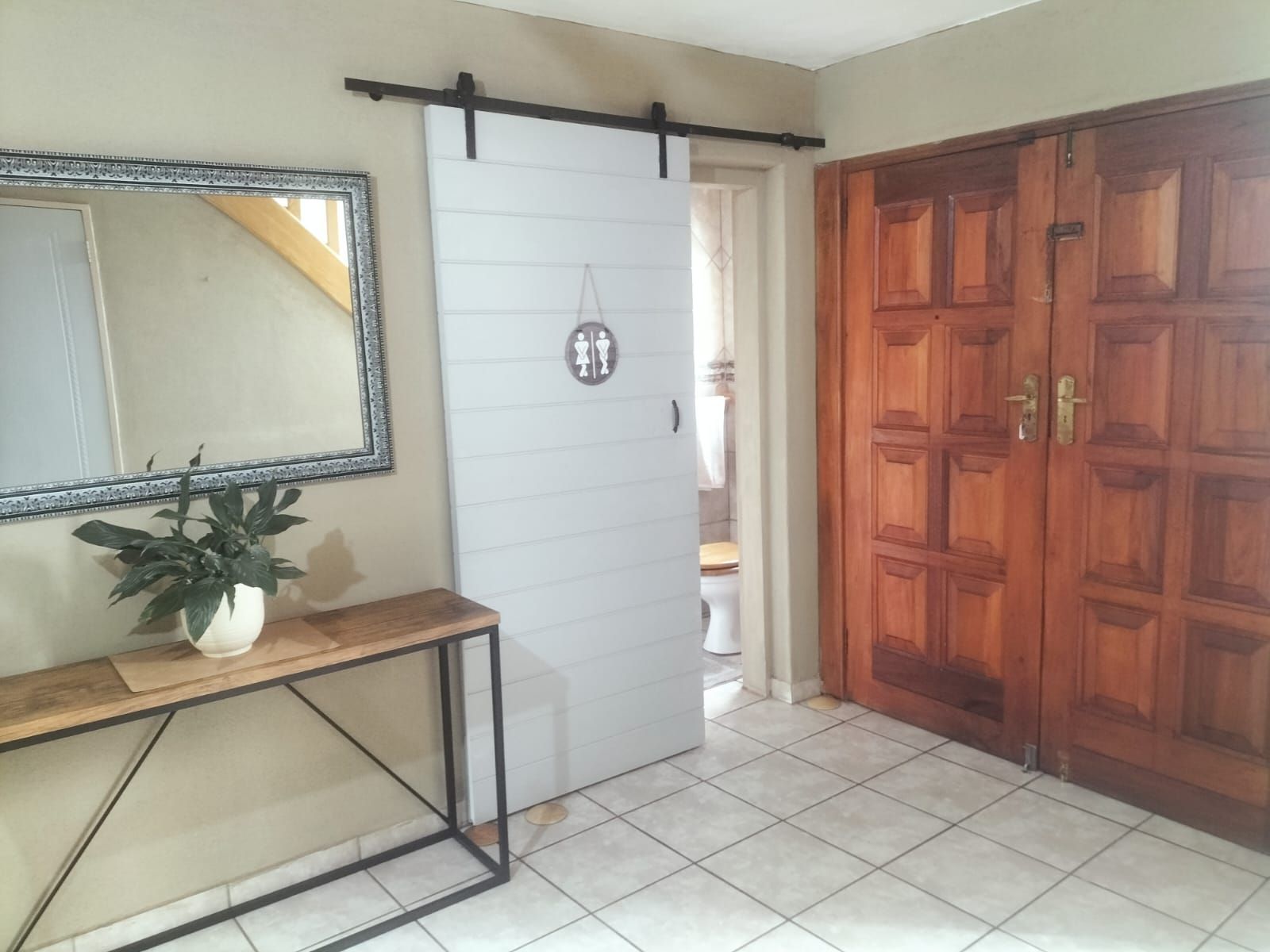 This residence is meticulously designed for the modern family, offering five spacious bedrooms and two beautiful bathrooms, plus a guest toilet. The main suite is a private sanctuary, complete with a walk-in closet, an elegant en-suite, and a private stoep where you can enjoy your morning coffee