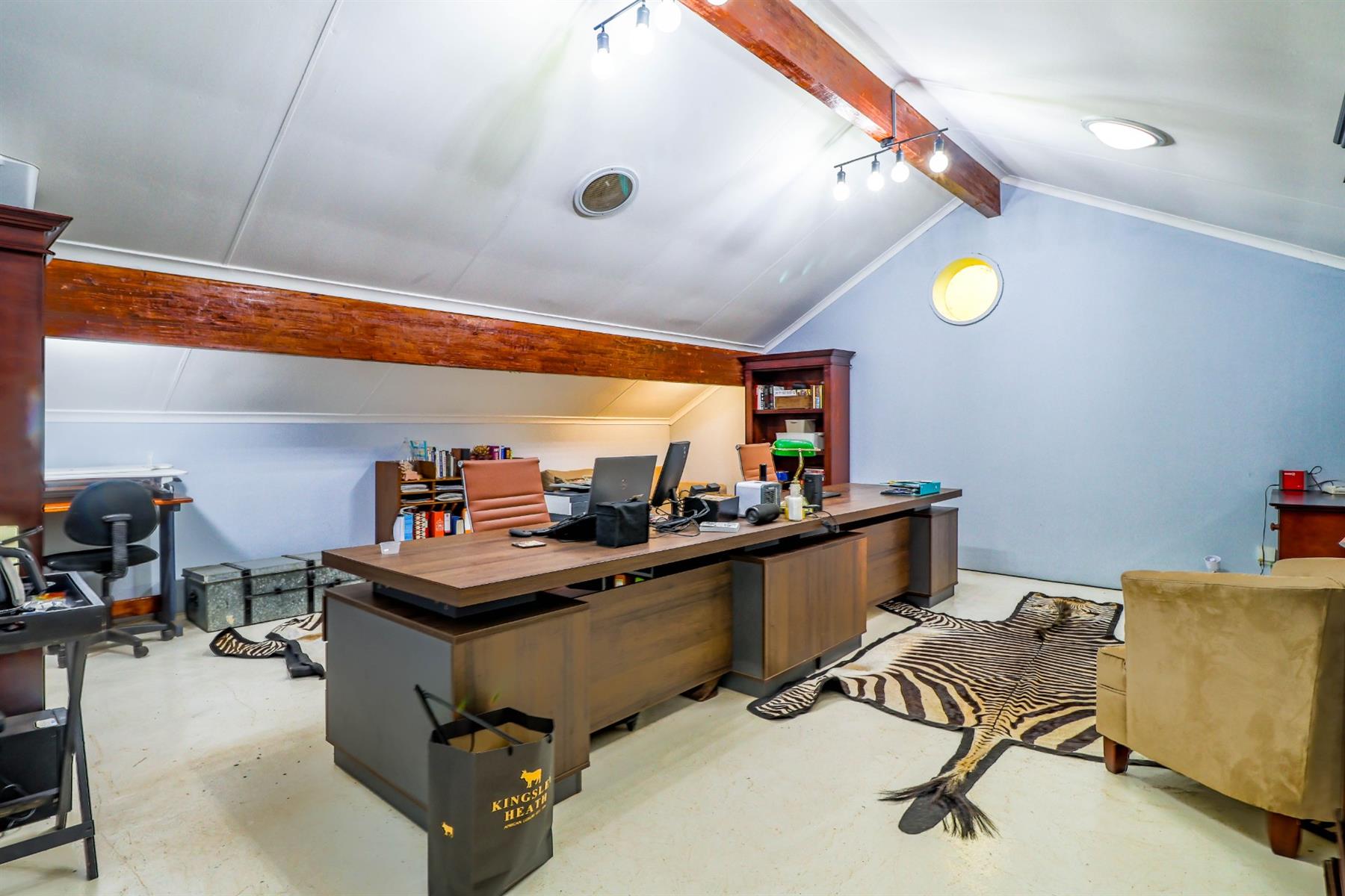 Additional features include a dedicated office space, a versatile studio, and a guest toilet for added convenience. Stay connected with fiber Wi-Fi and benefit from backup battery systems, solar panels, and an inverter for energy efficiency. The home also includes security features such as burglar bars, intercom system, security gate, and a safe.