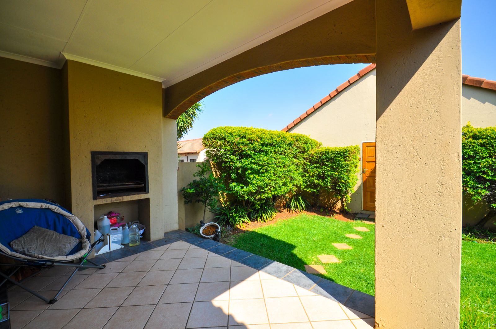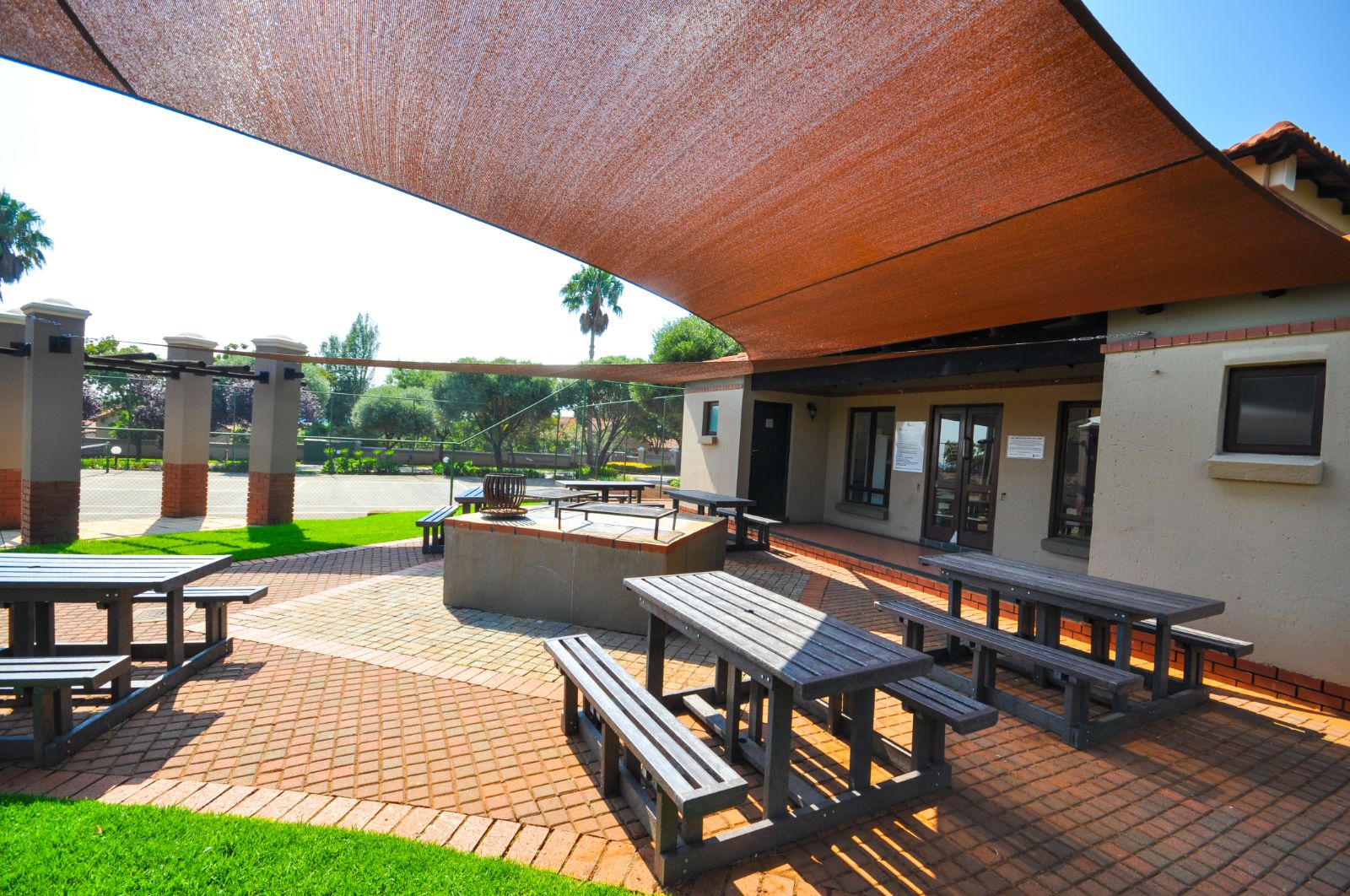 There are 2 north facing bedrooms and 2 bathrooms. All the floors are tiled and there is a double garage. The patio has a built in braai.