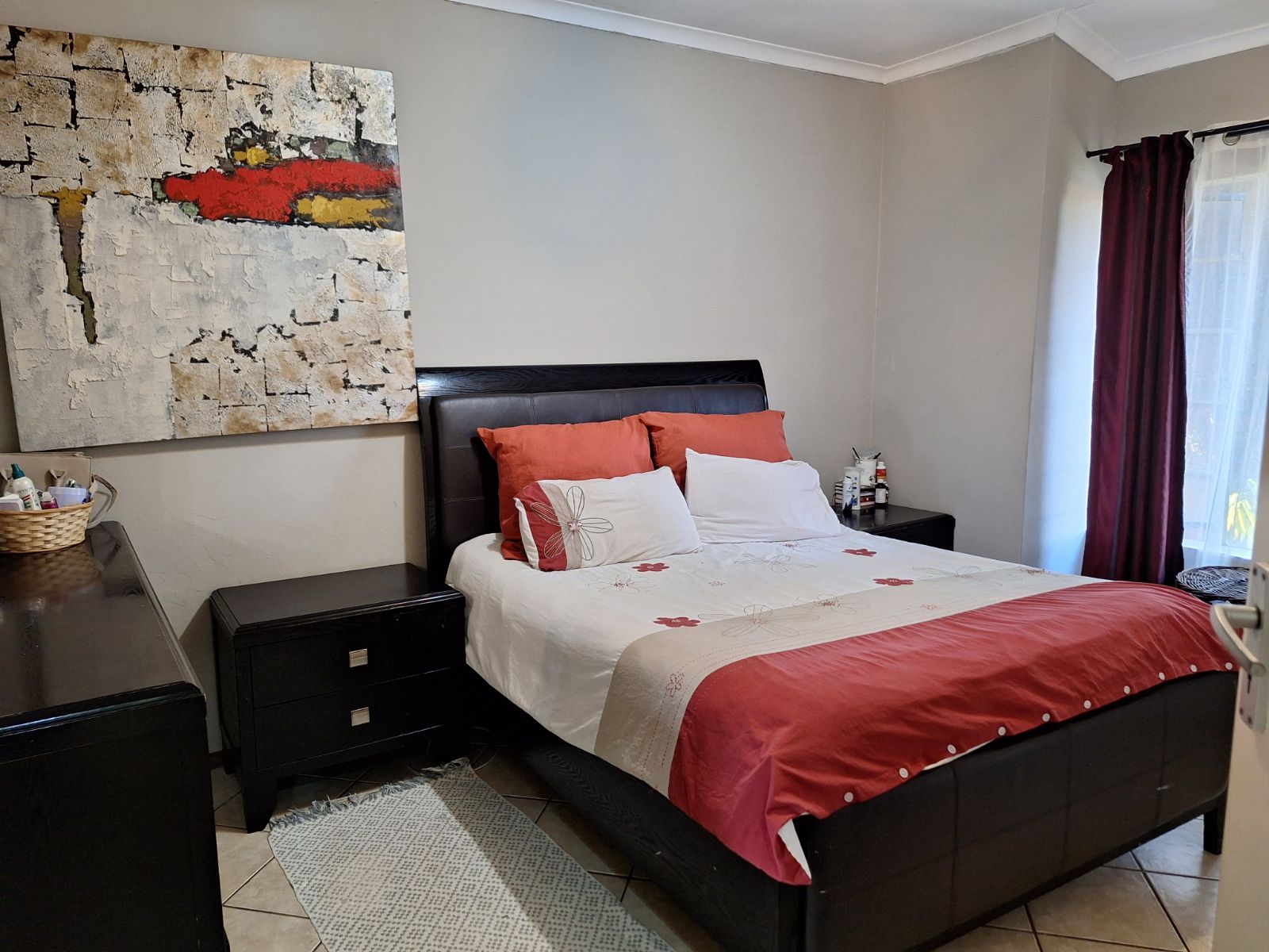Large main bedroom with built-in cupboards and full en-suite bathroom