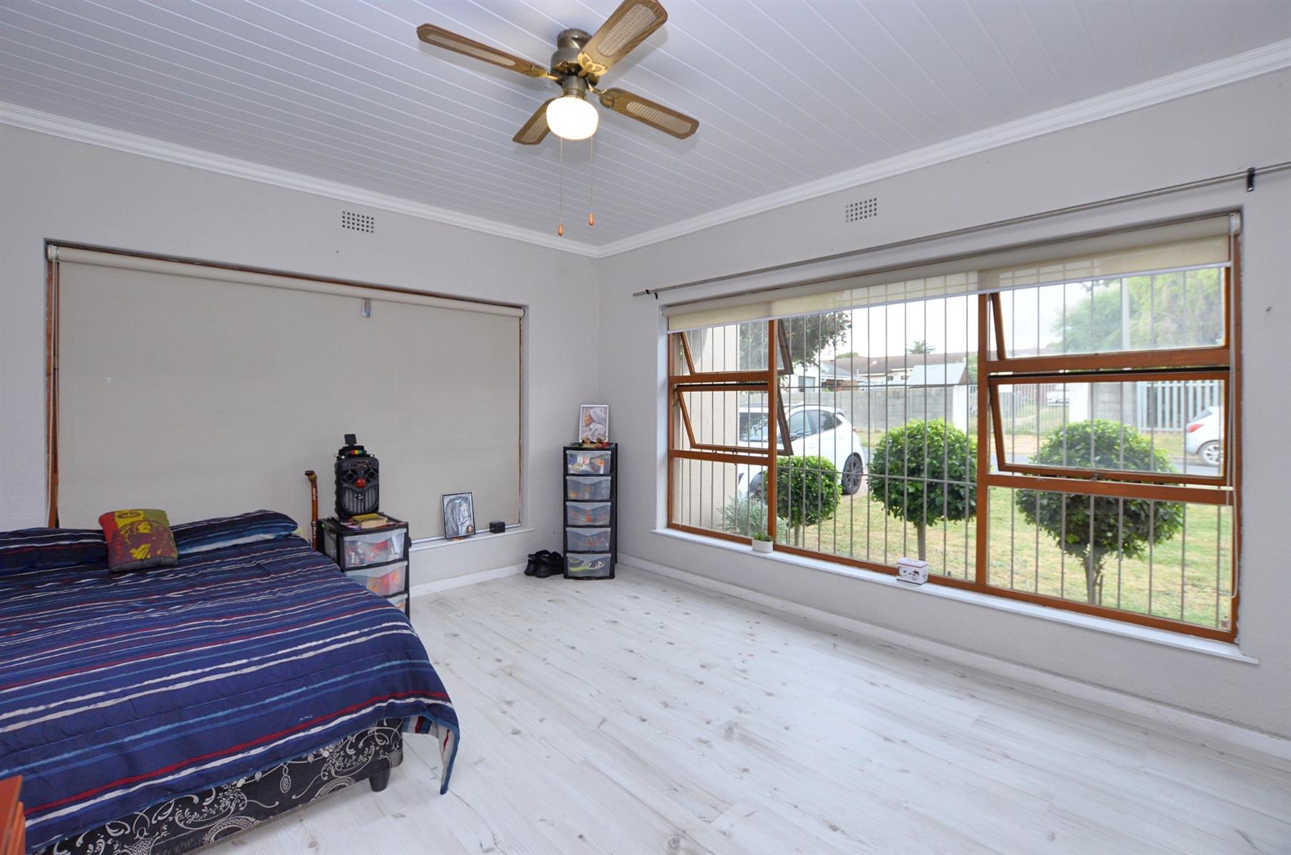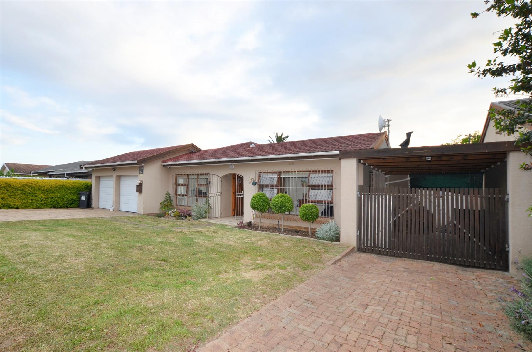 Additional features include a double garage with direct access to the home, an undercover parking bay, and ample visitors’ parking. The property is fully secured with burglar bars and blinds throughout.