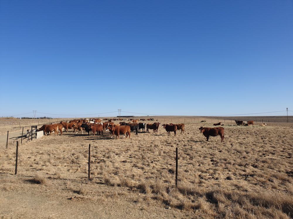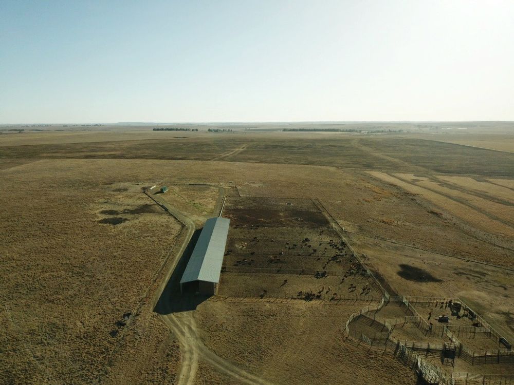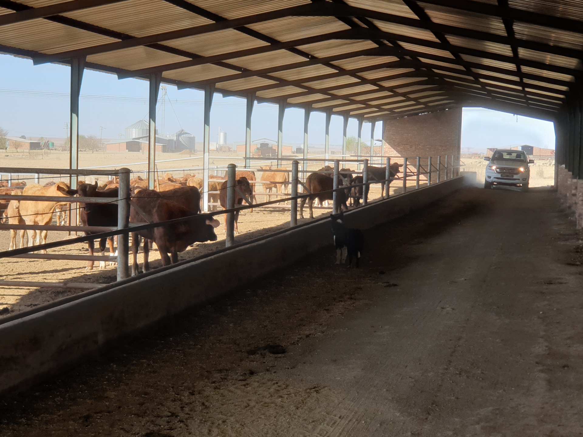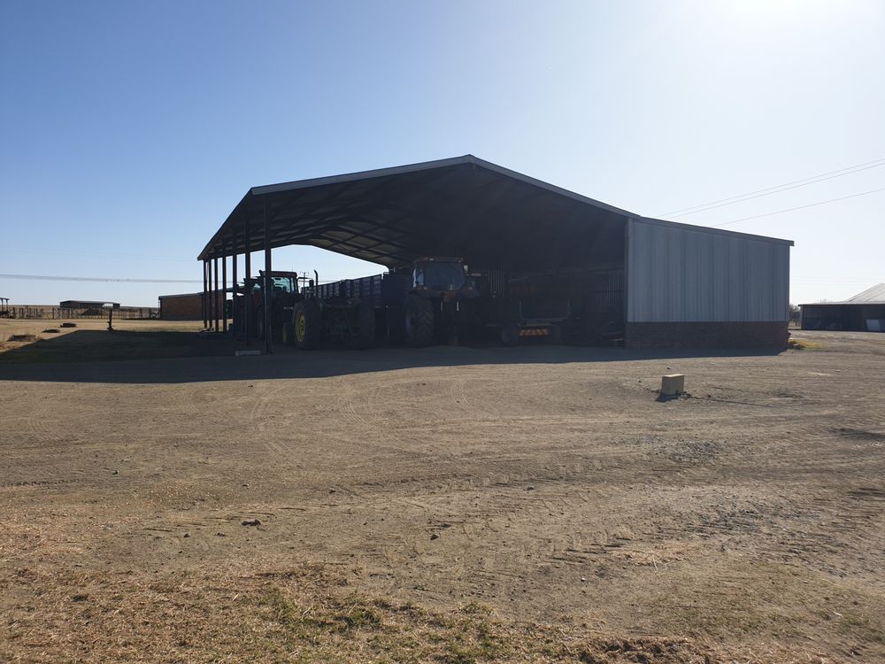 Cattle feedlot is 50 under roof with concrete flooring as well as handling facilities