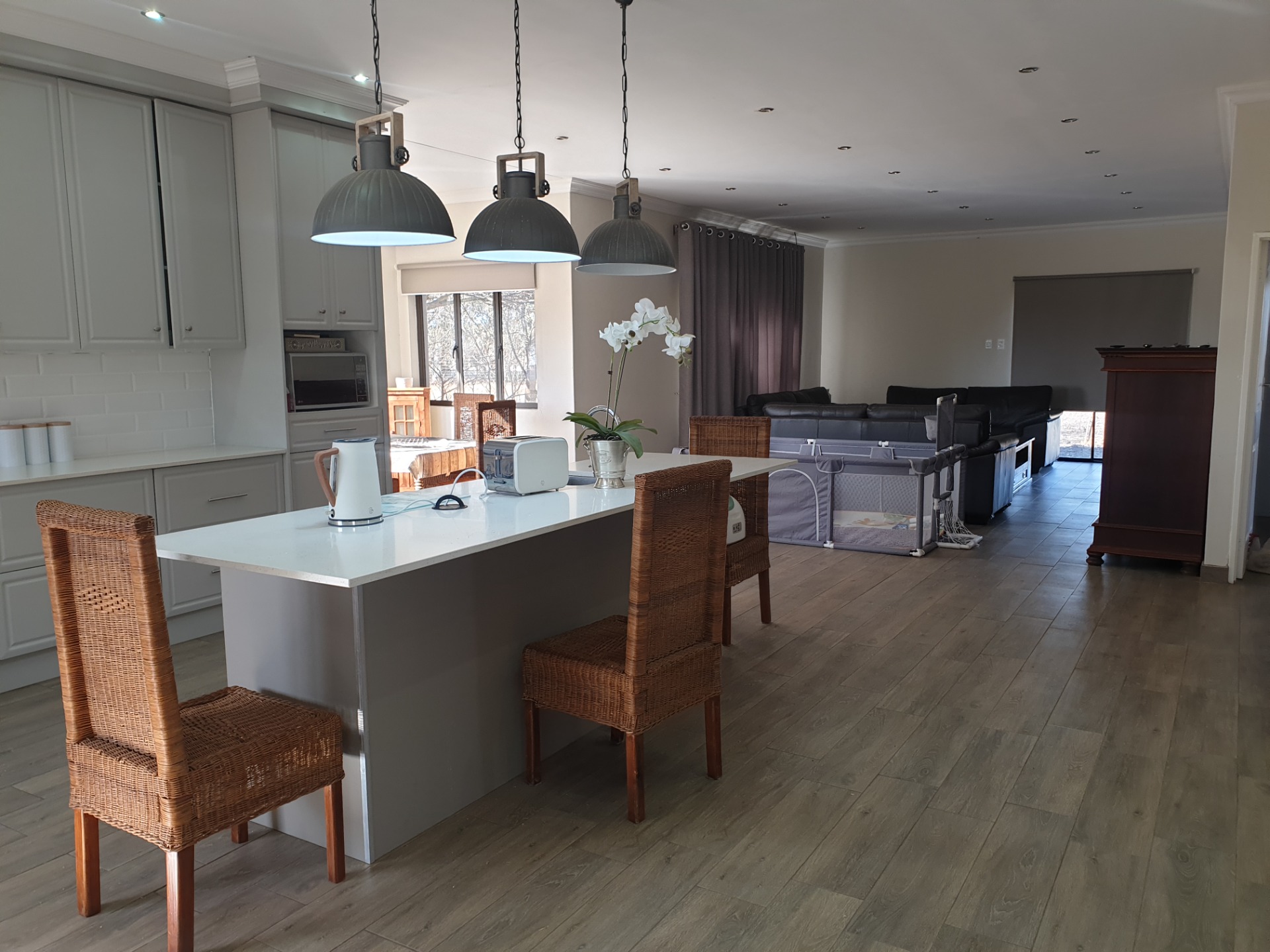 Main house - 3 x bedrooms, full bathroom, kitchen with pantry, lounge, tv room and a dining room