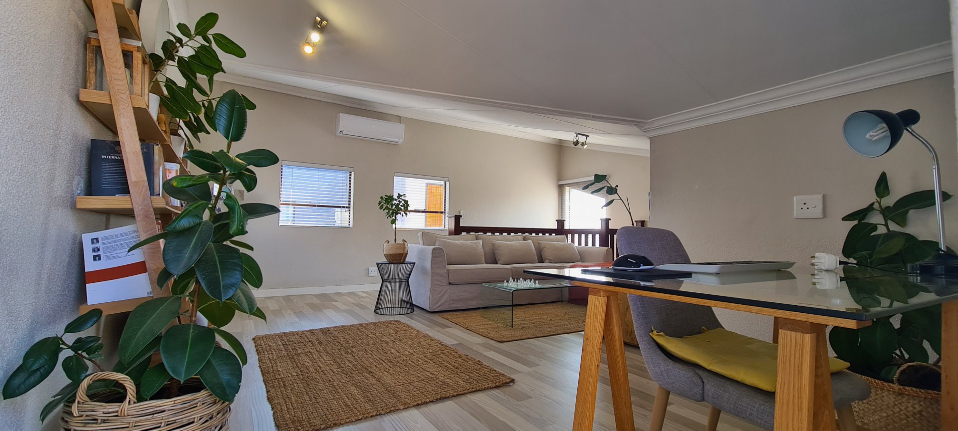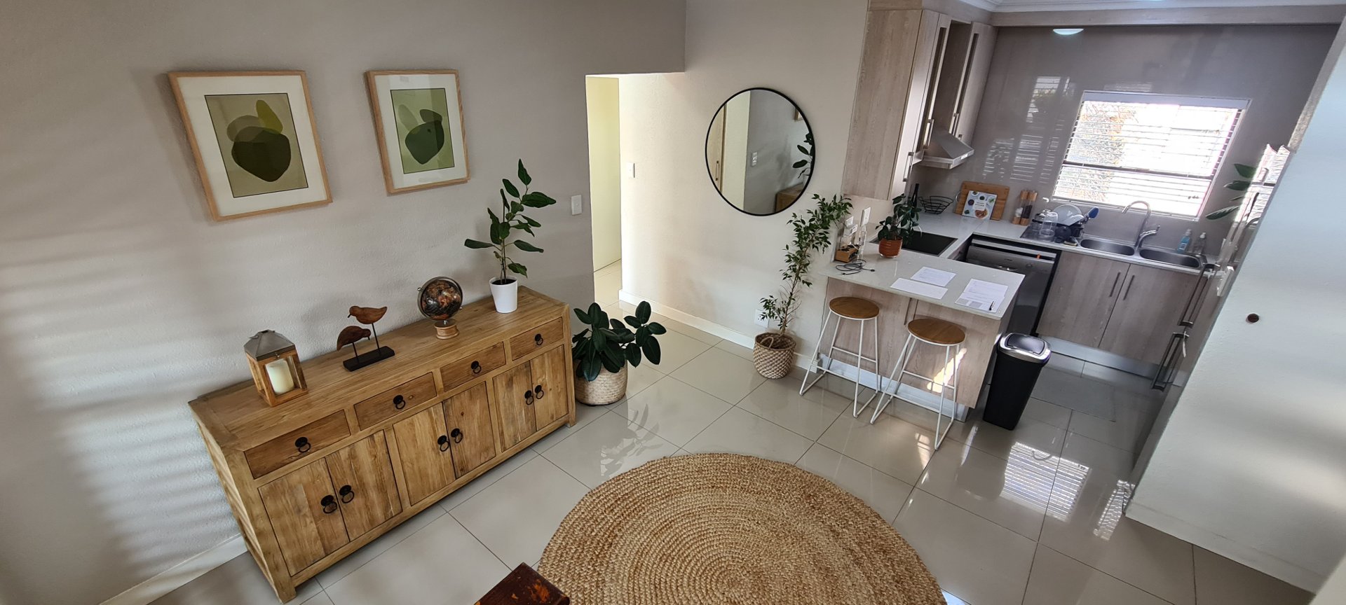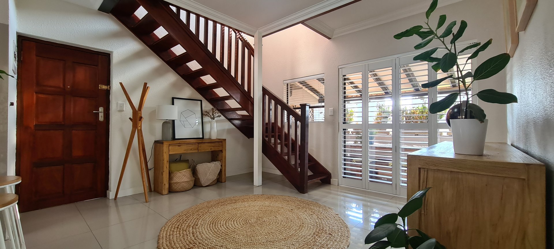 The open plan kitchen and foyer opening up to a covered balcony equipped for a barbeque with friends or family.