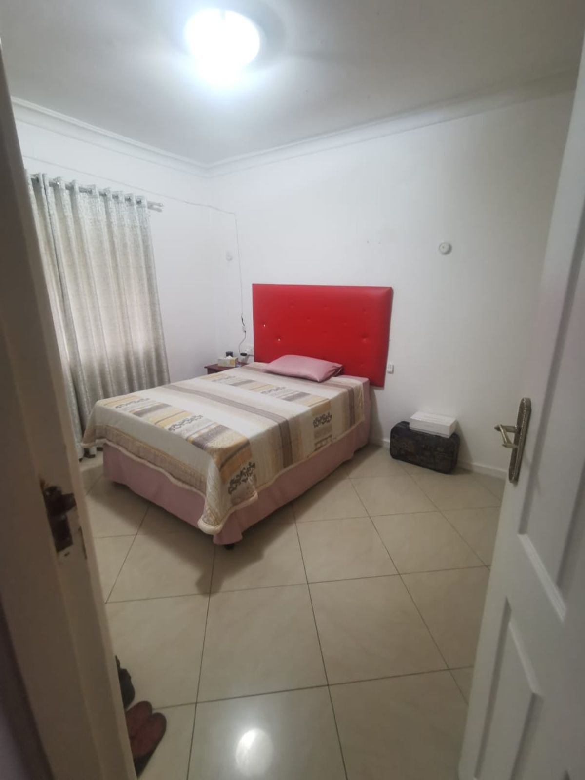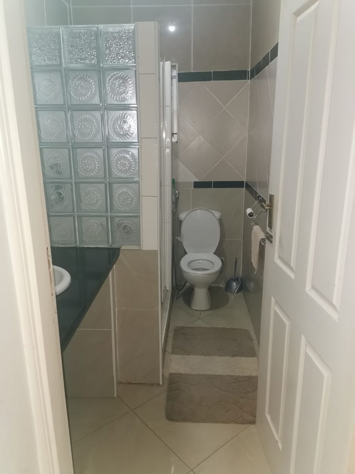Both bedrooms are generously sized and include built-in cupboards, providing ample storage and comfort. The modern bathroom is neatly finished with a shower, toilet, wash basin, vanity mirror, and storage cabinet. The apartment includes one dedicated parking space and is situated in a safe, quiet area, making it an excellent choice for those seeking a peaceful and comfortable living environment.