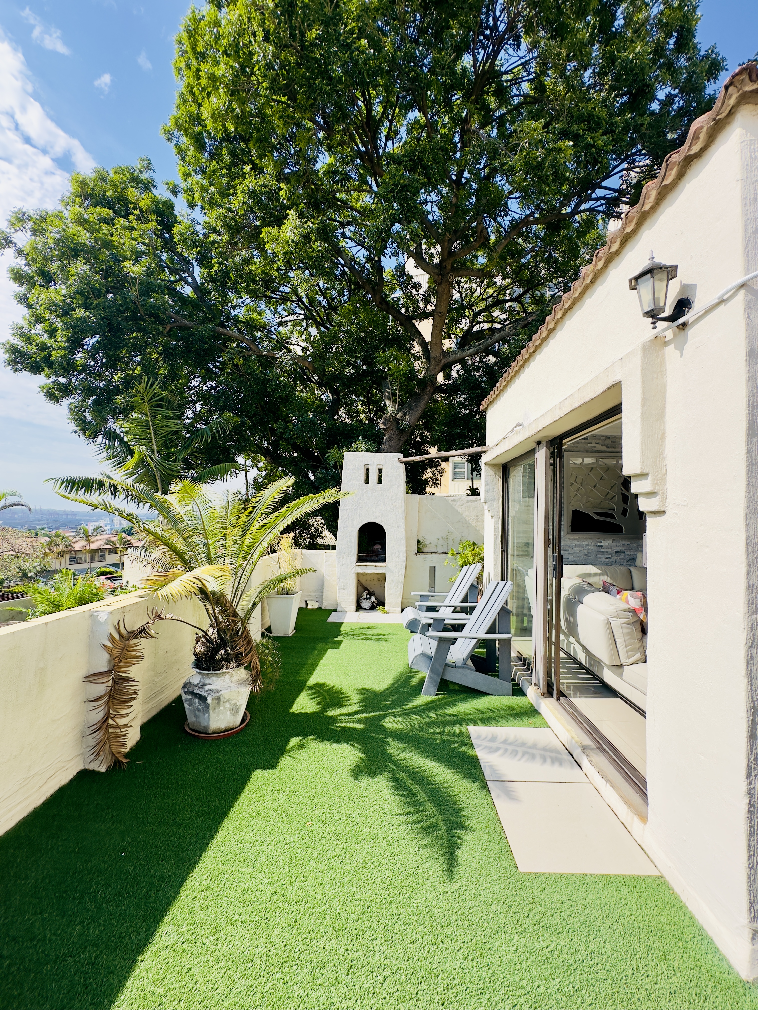 Spacious and elegantly finished apartment offering 2.5 generously sized bedrooms and 2 modern bathrooms, including a private ensuite. The main bedroom and lounge both open onto a patio, creating a seamless indoor–outdoor living experience. The apartment features a fully fitted braai area equipped for comfortable entertaining, a modern, fully fitted kitchen with quality finishes, and a dedicated laundry area.