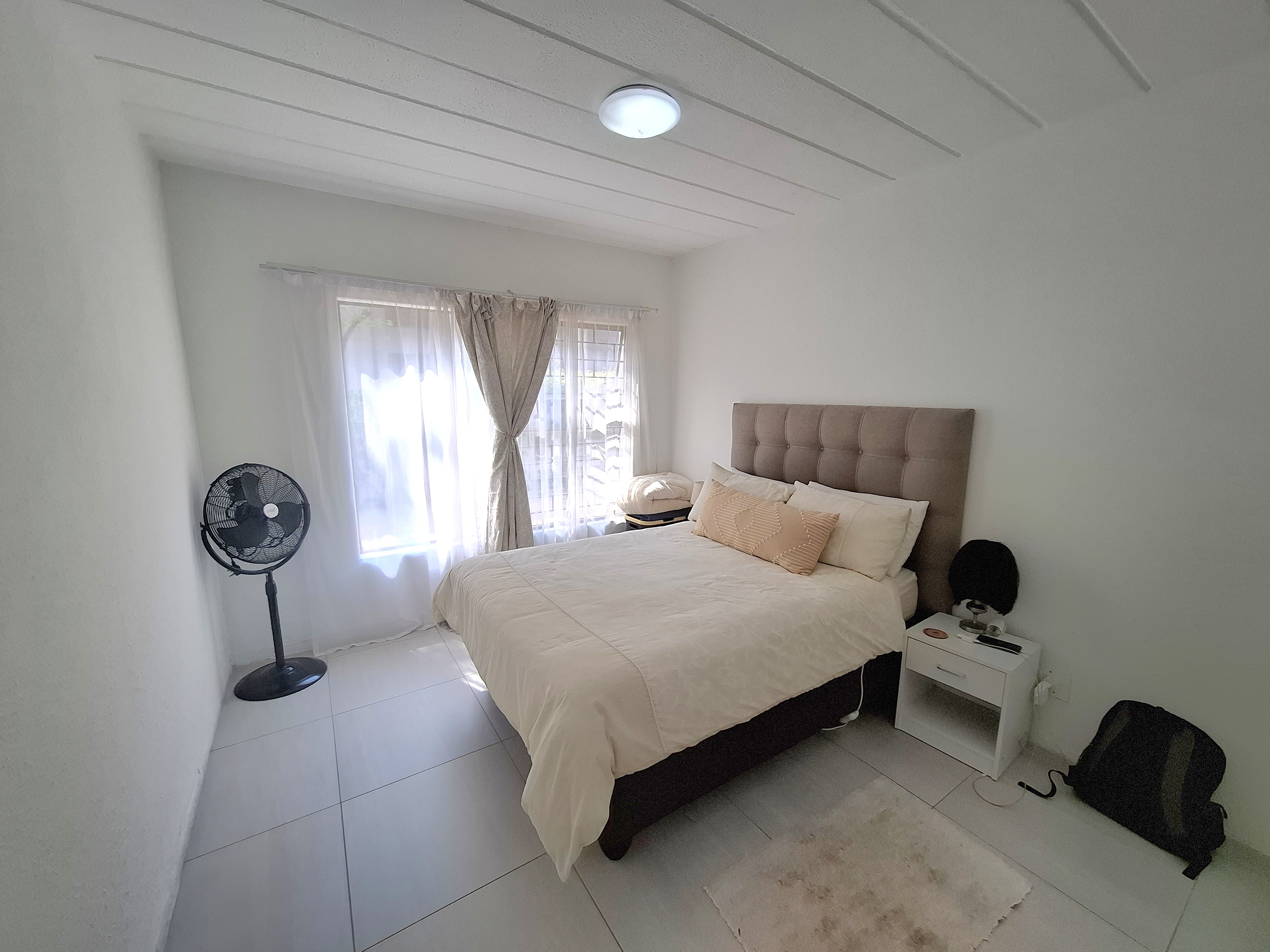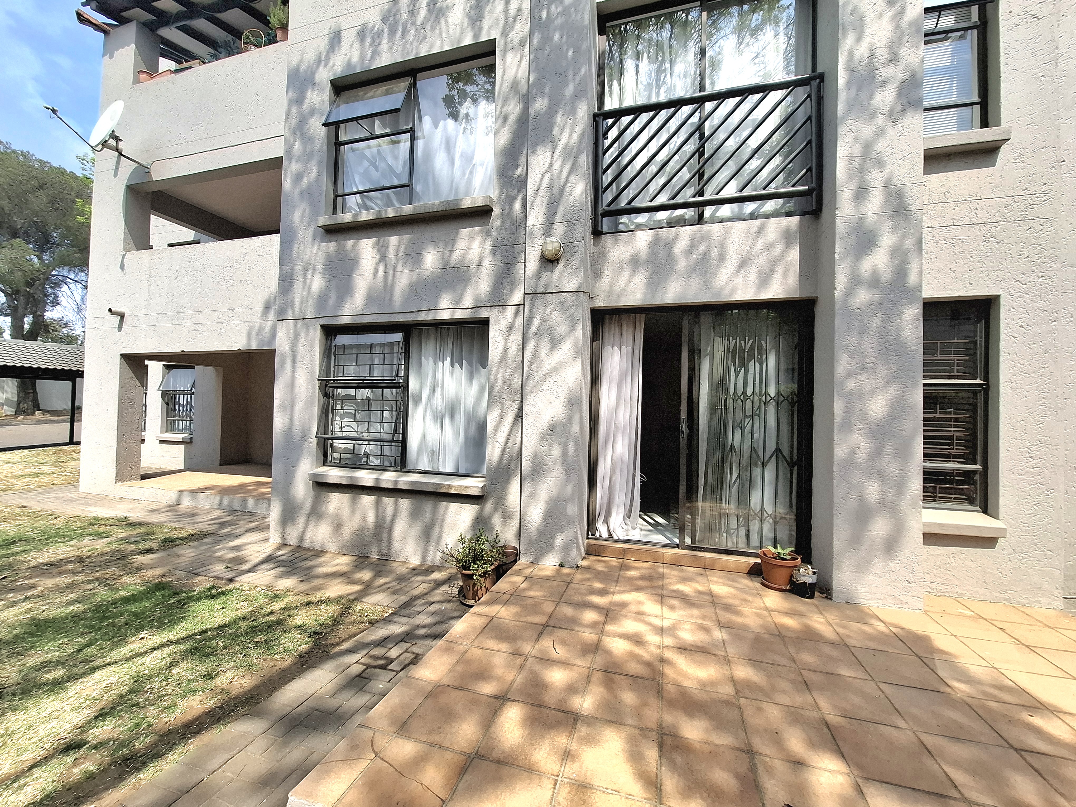 Huntington Terrace in Morningside - Come view – Let’s chat! Tenant in occupation until May 2026. 1 bedroom, 1 bathroom ground floor (garden) apartment For Sale. Open plan kitchen overlooks the sun drenched living room, stepping out to your own tiled patio and communal gardens. Your bedroom is large and sunny with built in cupboards and modern tiled flooring. Your bathroom has a bathtub with shower over bath. 1 covered parking is allocated to the apartment. The communal areas offer well tended gardens, pool, clubhouse and 24/7 guarded security.