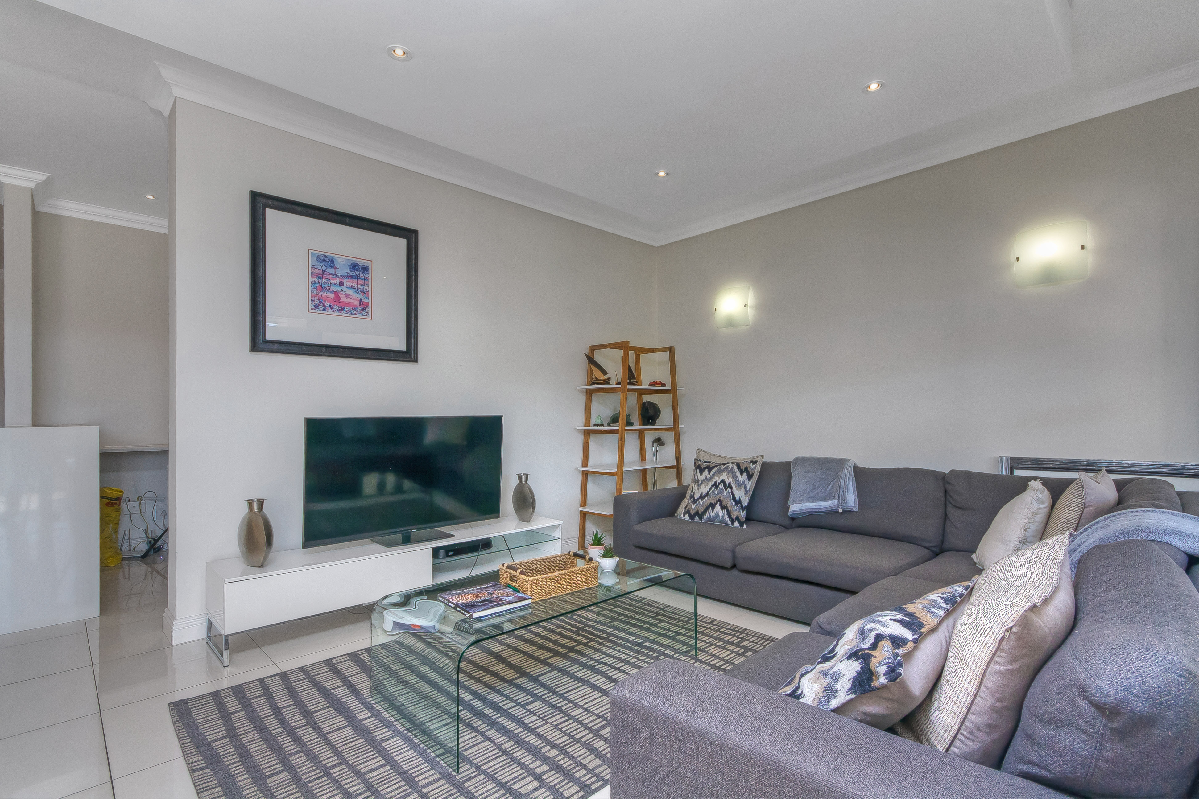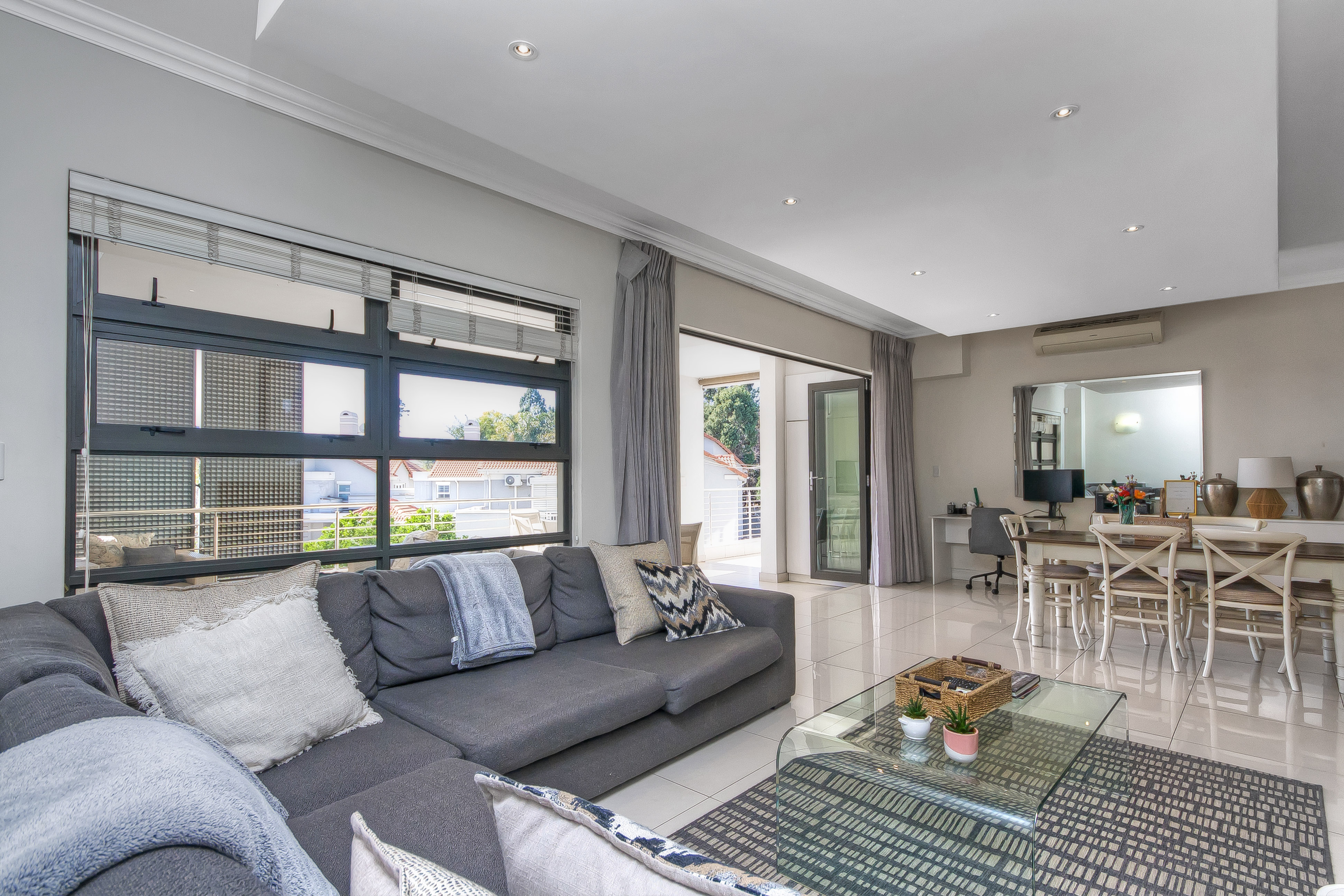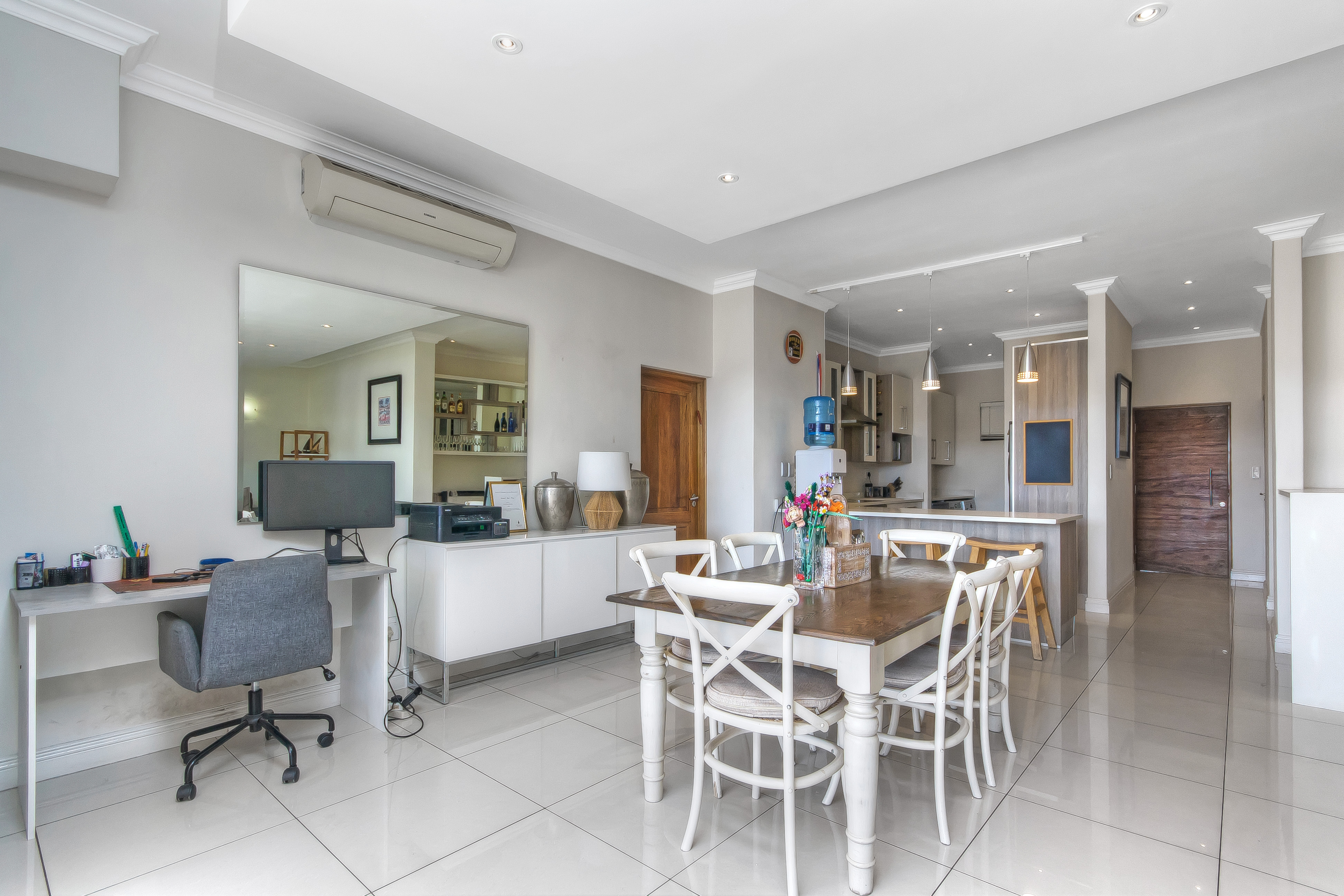 Open-plan immaculate and luxuriously styled kitchen and scullery with loads cupboards and eat in counter , leads through to the most spectacular living space , a great flow through out the apartment with meticulous architectural features and once again A WOW living area with bright light flowing through the home and the most incredible energy flowing from room to room .
