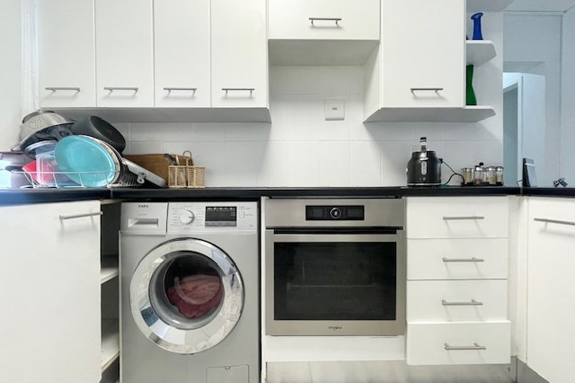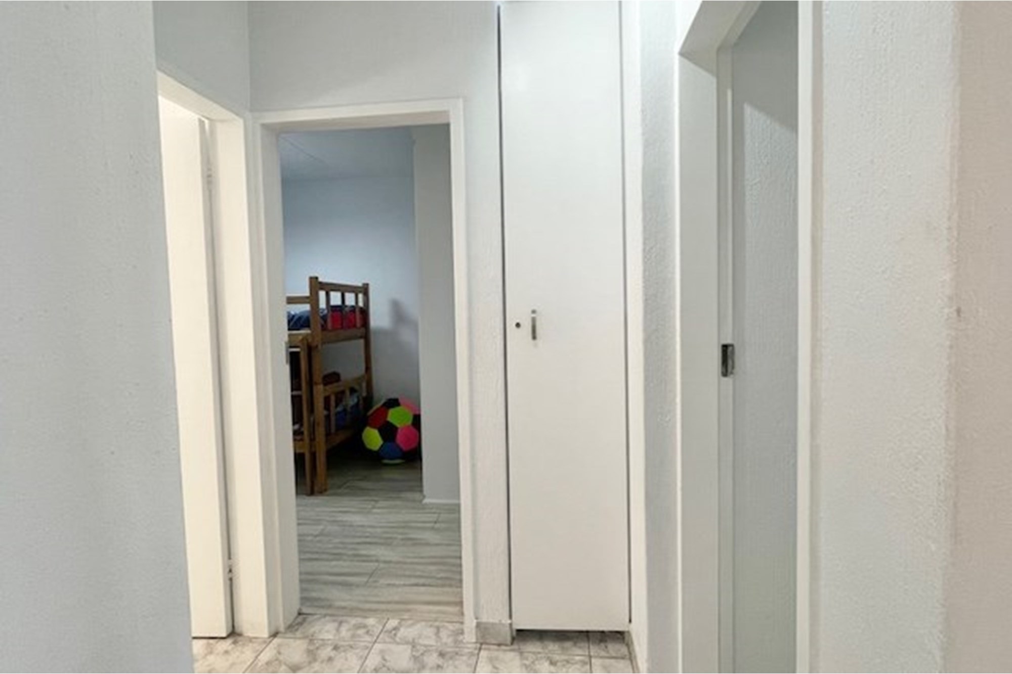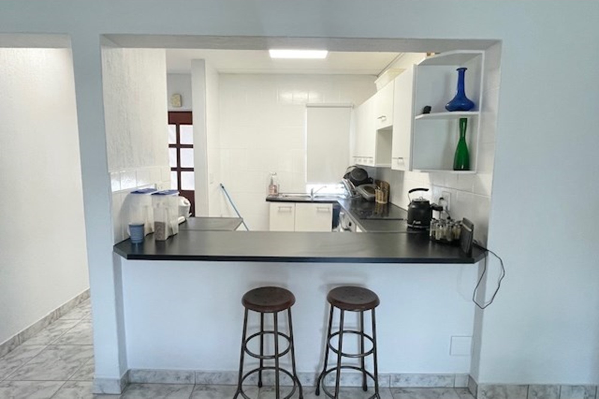 Upon entering, you find a spacious and airy living room that opens up to a patio and beautiful garden beyond, allowing natural light to fill the space.