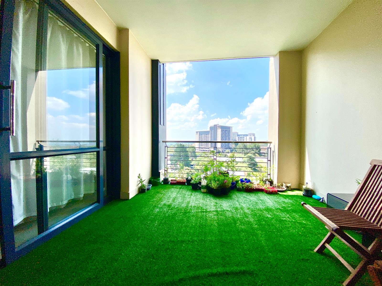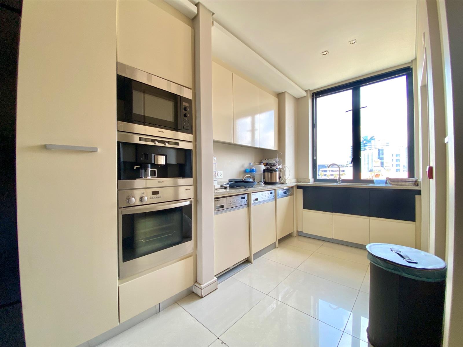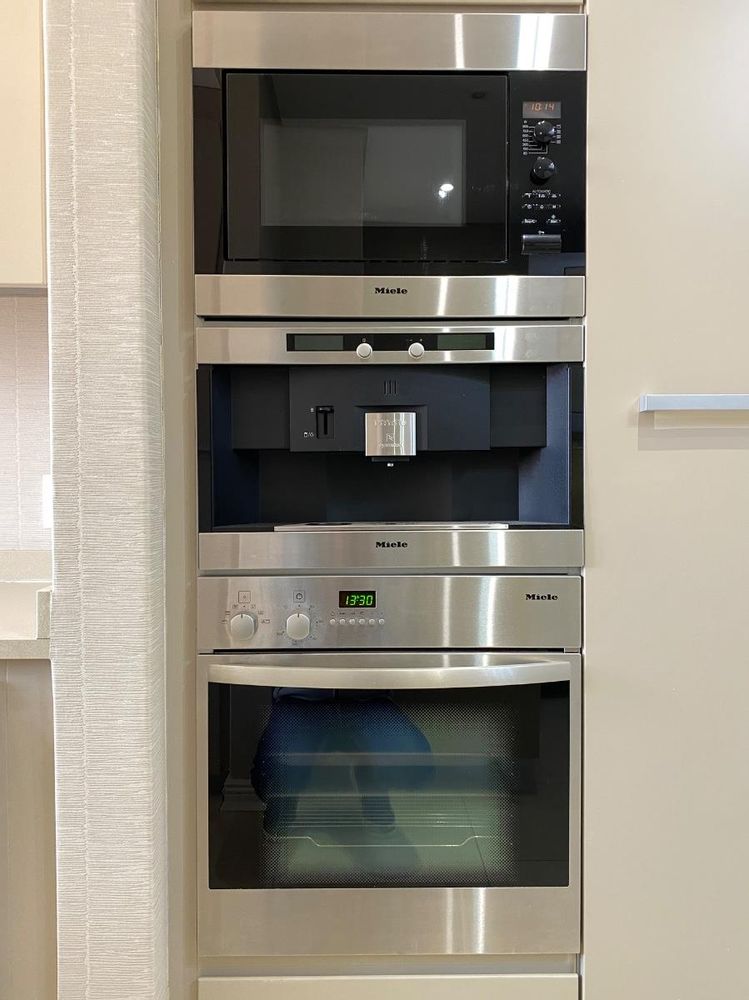 To get to the apartment, biometrics are needed for the lift to take you straight into the apartment. As you enter the entrance lobby, there is the open plan living space of the dining area, lounge leading out to the well sized balcony. The kitchen is a modern finish fitted with Miele appliances and granite tops.