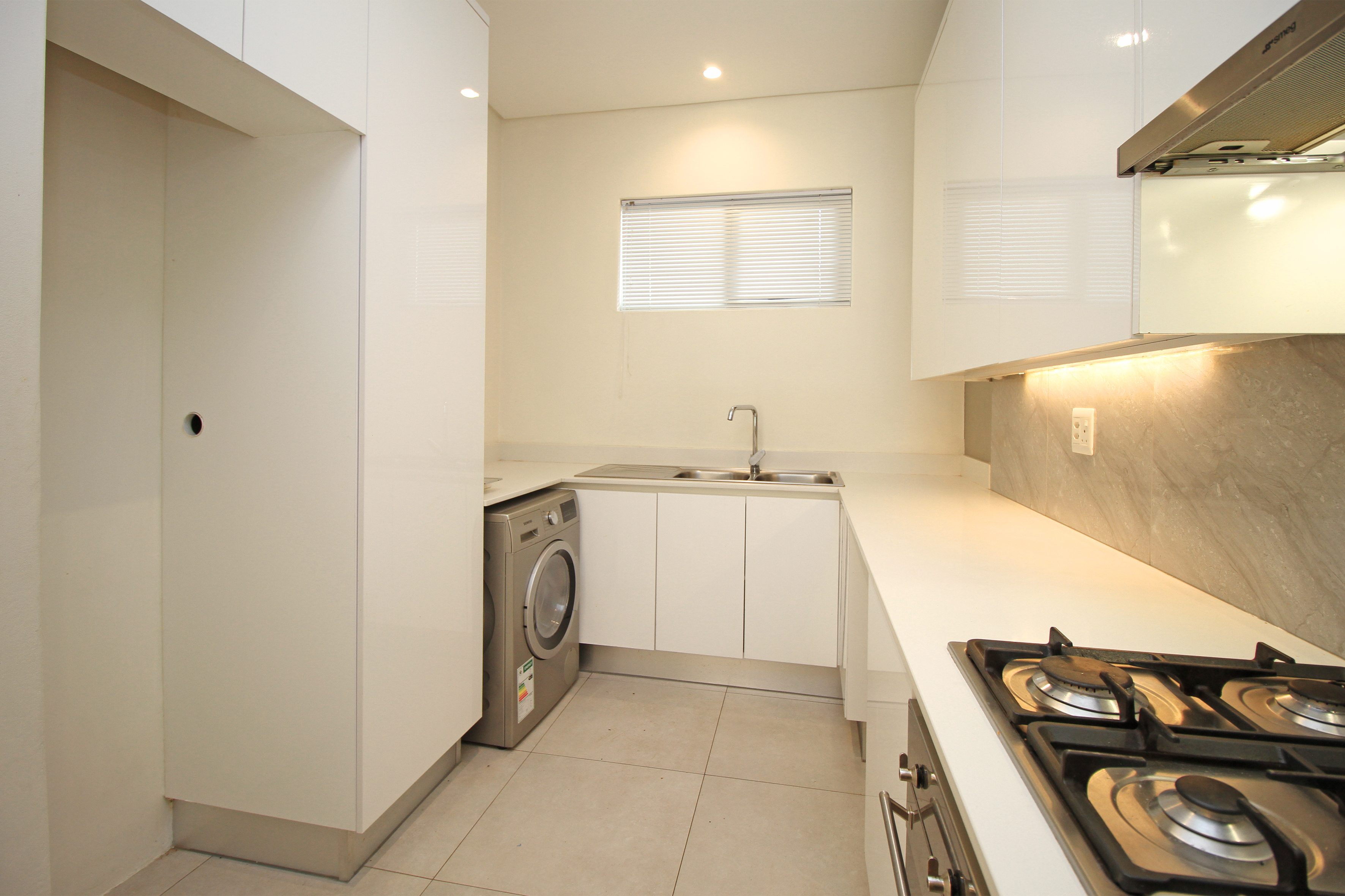 A chic, fully equipped kitchen featuring modern cabinetry and stylish countertops.