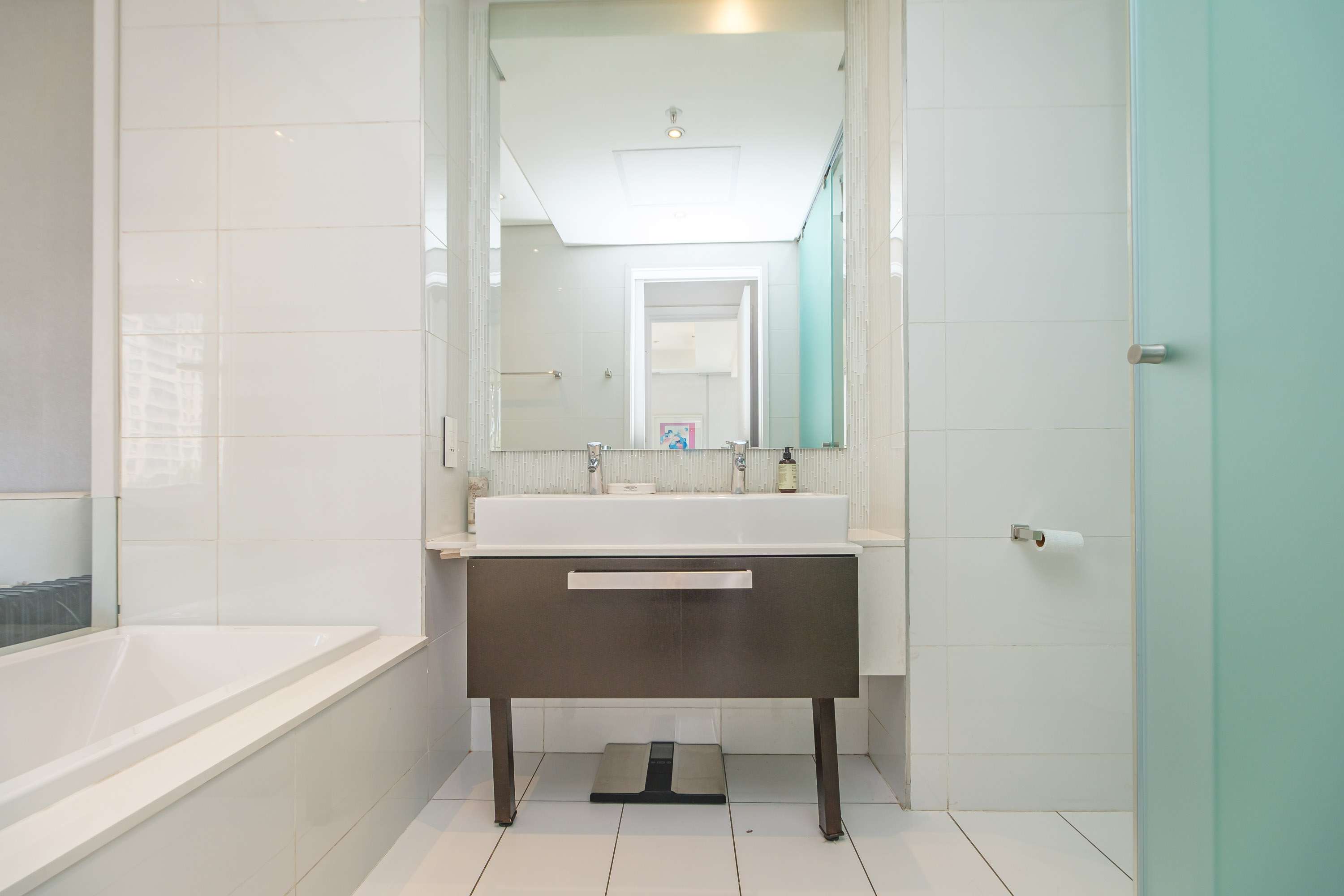 The apartment features a spacious open-plan kitchen with modern finishes and ample built-in cupboards, flowing seamlessly into the dining and lounge area. The luxurious en-suite bedroom boasts a bath, shower, double vanities, and a separate toilet. Premium finishes throughout enhance the sophisticated ambiance. One secure basement parking bay is included.