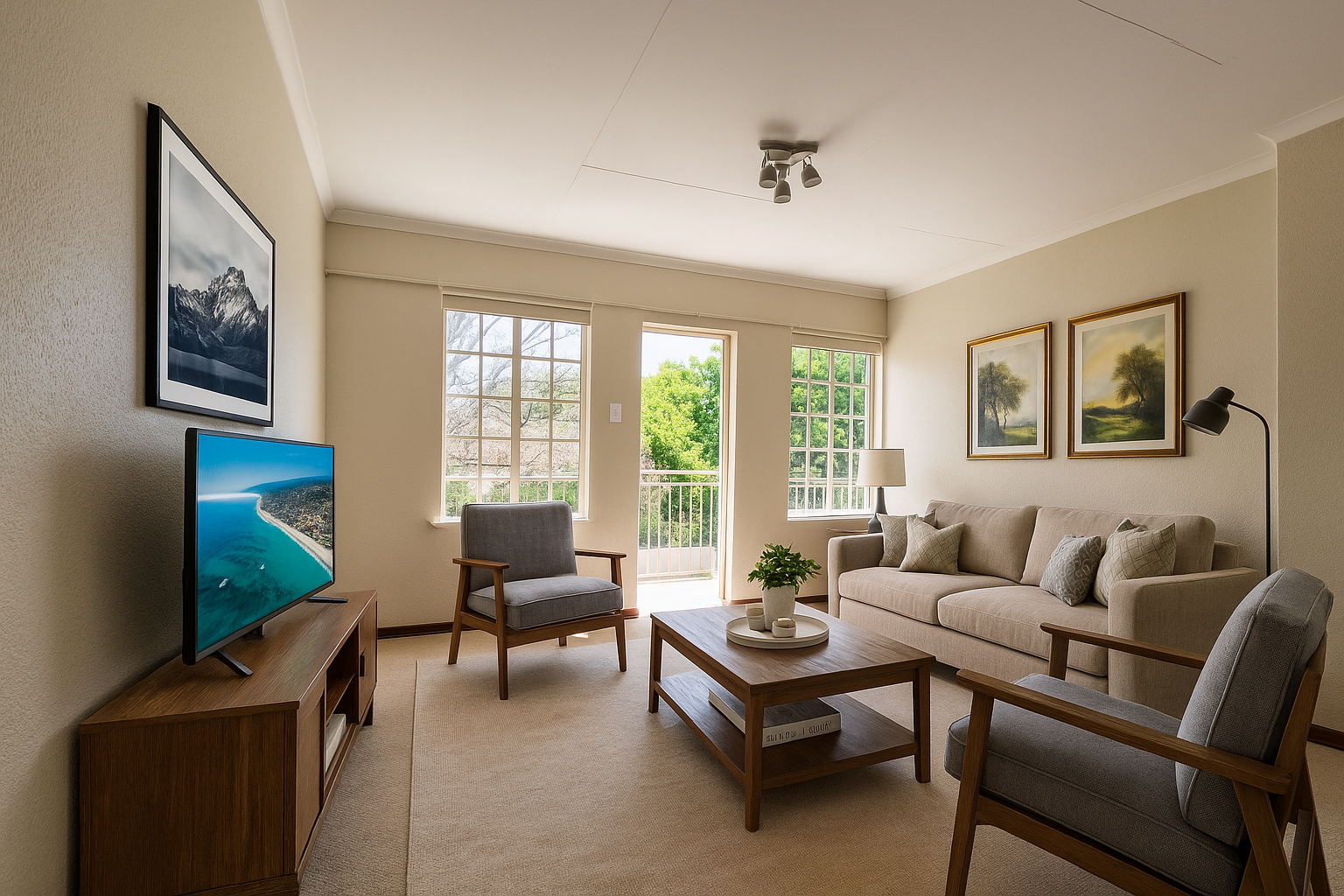This unfurnished apartment on the 1st Floor has been furnished using AI (pics show if furnished and as is unfurnished. AI is not 100% correct with dimensions).
