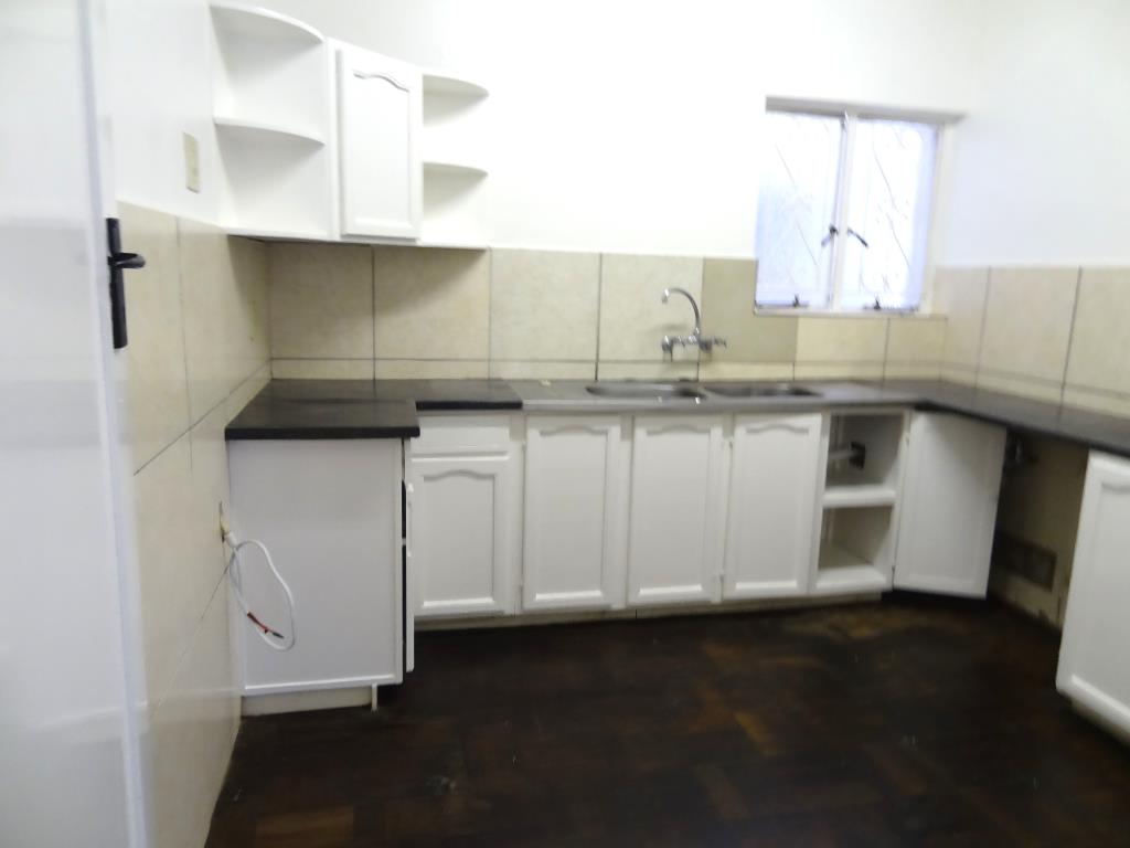 .Kitchen with generous storage, double sink, and space for a front-loader washing machine or dishwasher