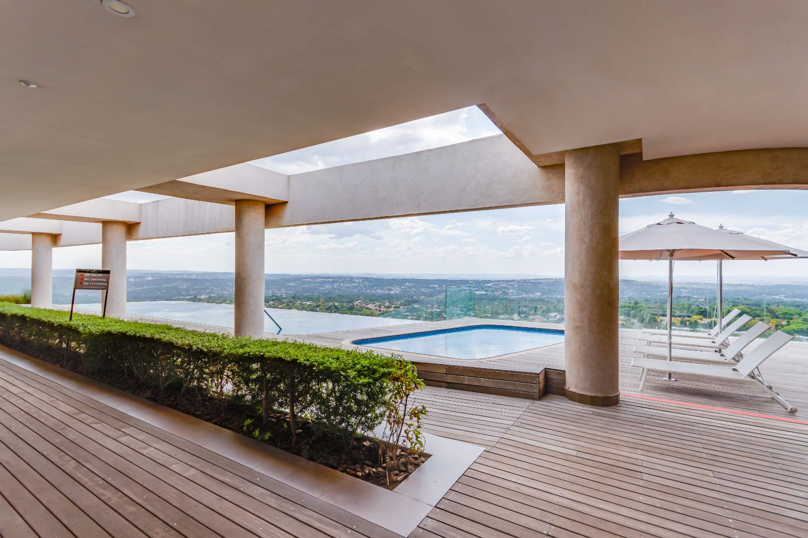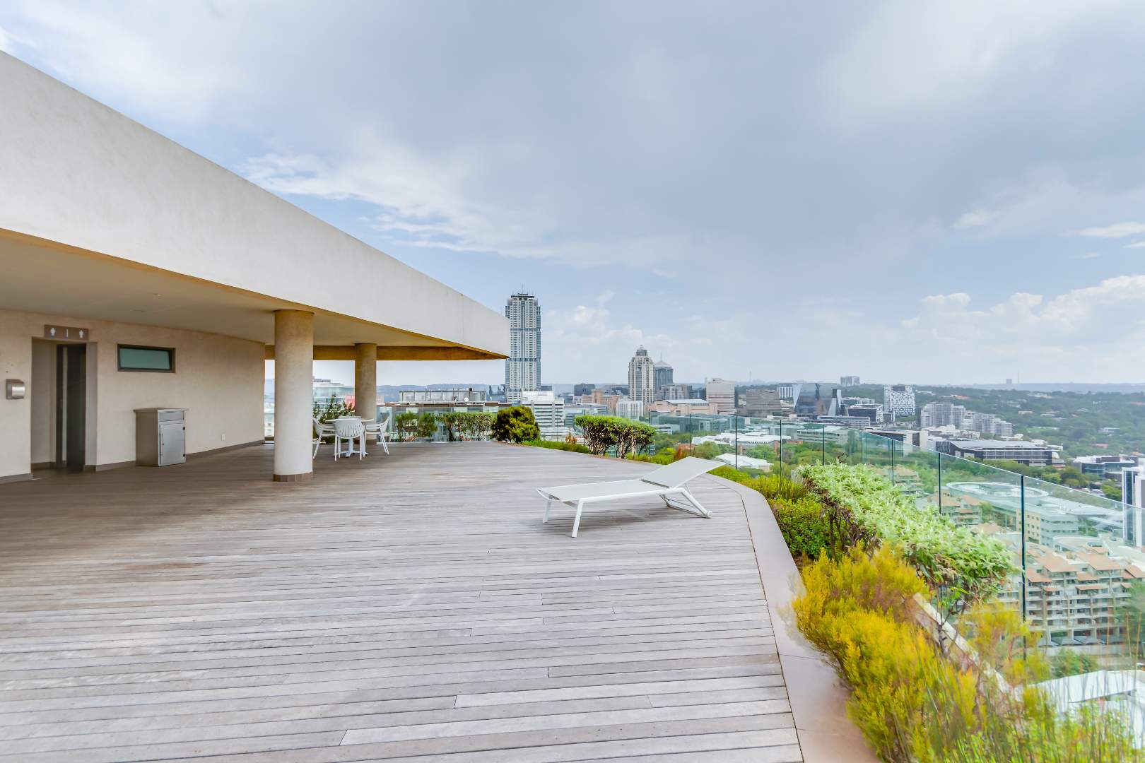 Residents also have access to the Sky Deck on the roof, featuring a 25m rim-flow pool with incredible views of Sandton.