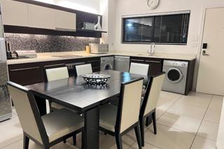 Fully furnished modern upscale city apartment with hotel-style amenities ideal for professionals, executives or couples seeking fully equipped city living. The main interior combines the lounge area and kitchen in airy flowing layout perfect for everyday living. It has contemporary finishes with tiled floors, smooth walls and quality light fixtures throughout. Both bedrooms are generously proportioned with built in cupboards. There's a large outdoor pool with lounging deck as well as a well equipped gym for residents. Central to walkable key spots like Sandton City, Nelson Mandela Square, the Gautrain and major financial institutions and corporate offices it is perfect for commuters and professionals. Contact me for a viewing!