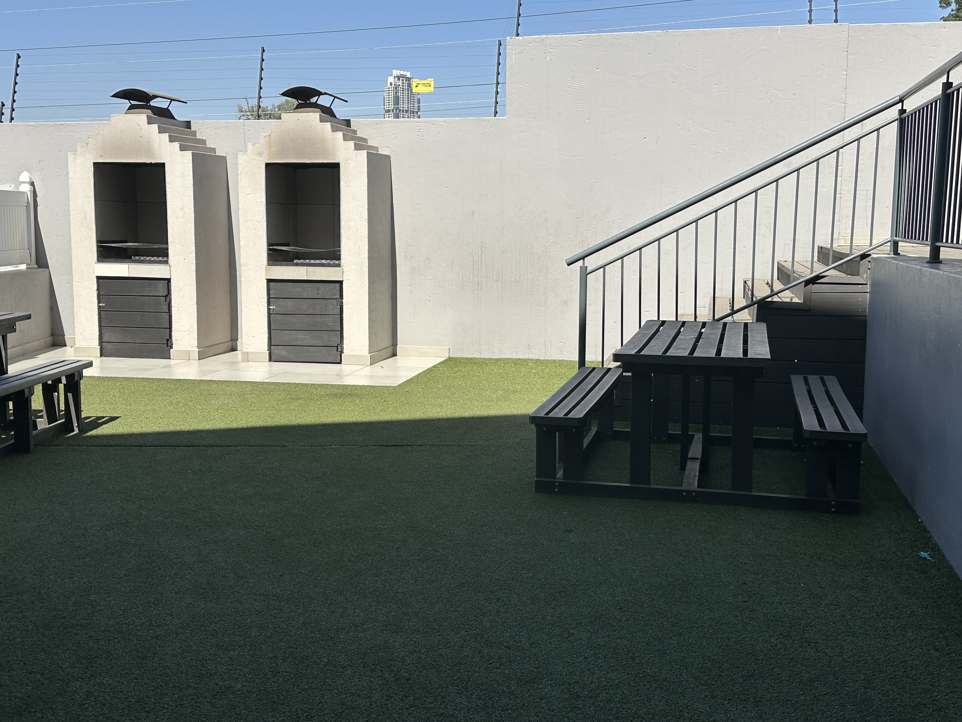 It is near Sandton Montessori Pre School, The Rivers Church is across the road and United Sisterhood Mitzvah a stone throw away. Popular retail shops and restaurants are closeby with an option of a less than 5 minute drive to Sandton City.