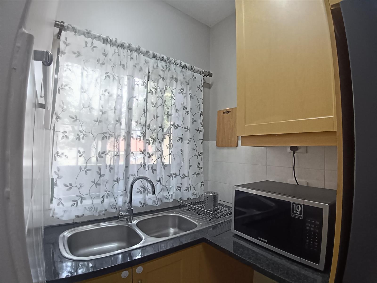 Modern granite kitchen, open plan living room. Washing machine and dishwasher connections available. The upgraded bathroom is outfitted with modern fixtures and shower. Two great sized bedrooms, with ample built-in cupboards. Tiled floors throughout.