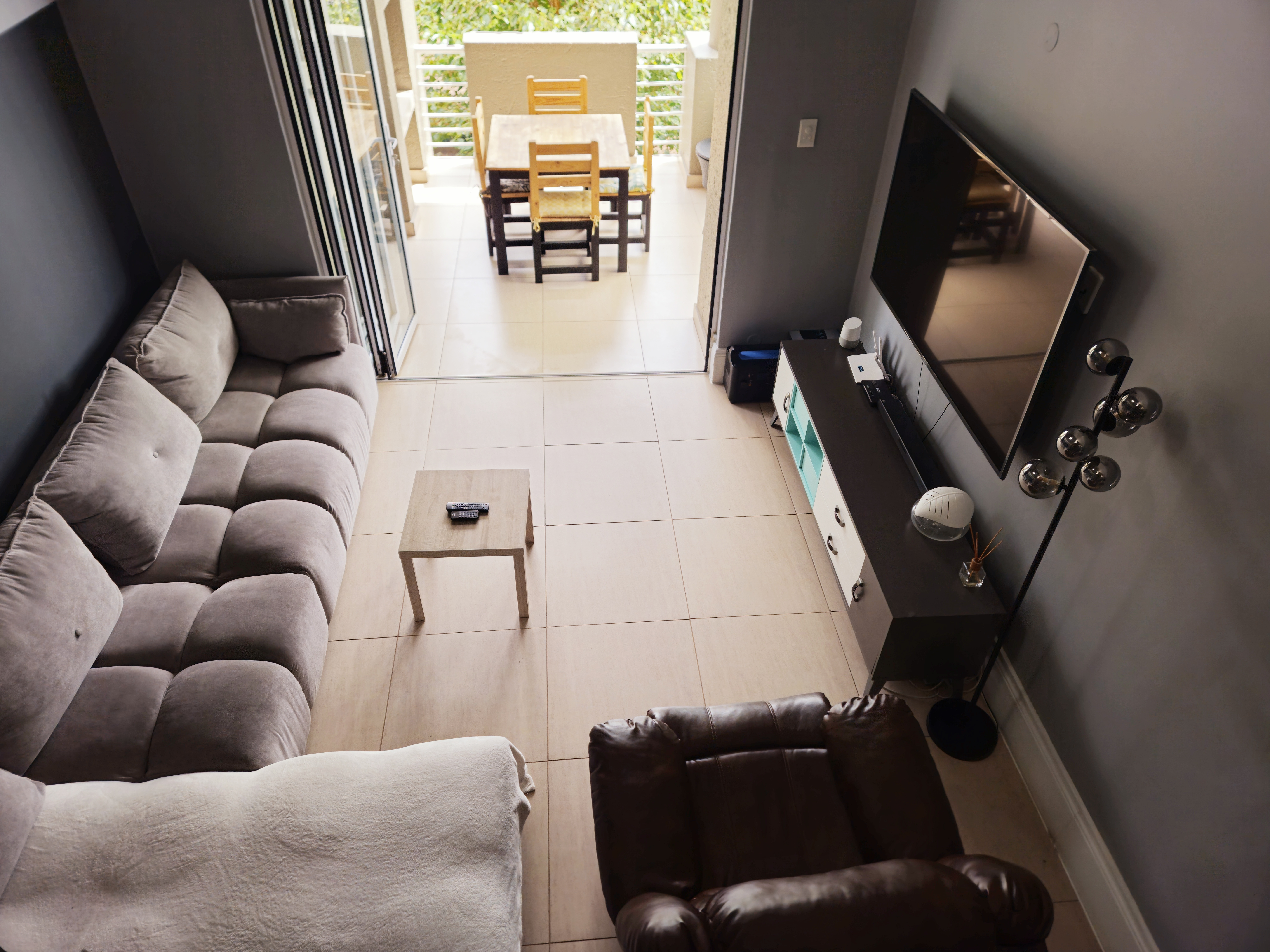 The balcony boasts a built-in braai and a tiled countertop, perfect for outdoor entertainment.