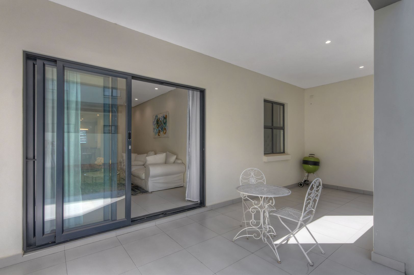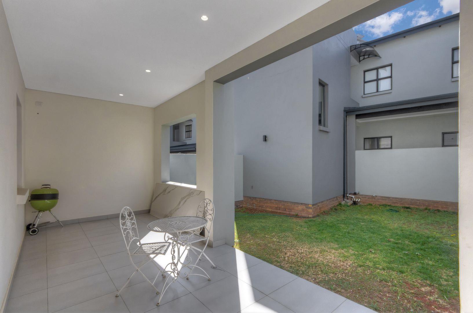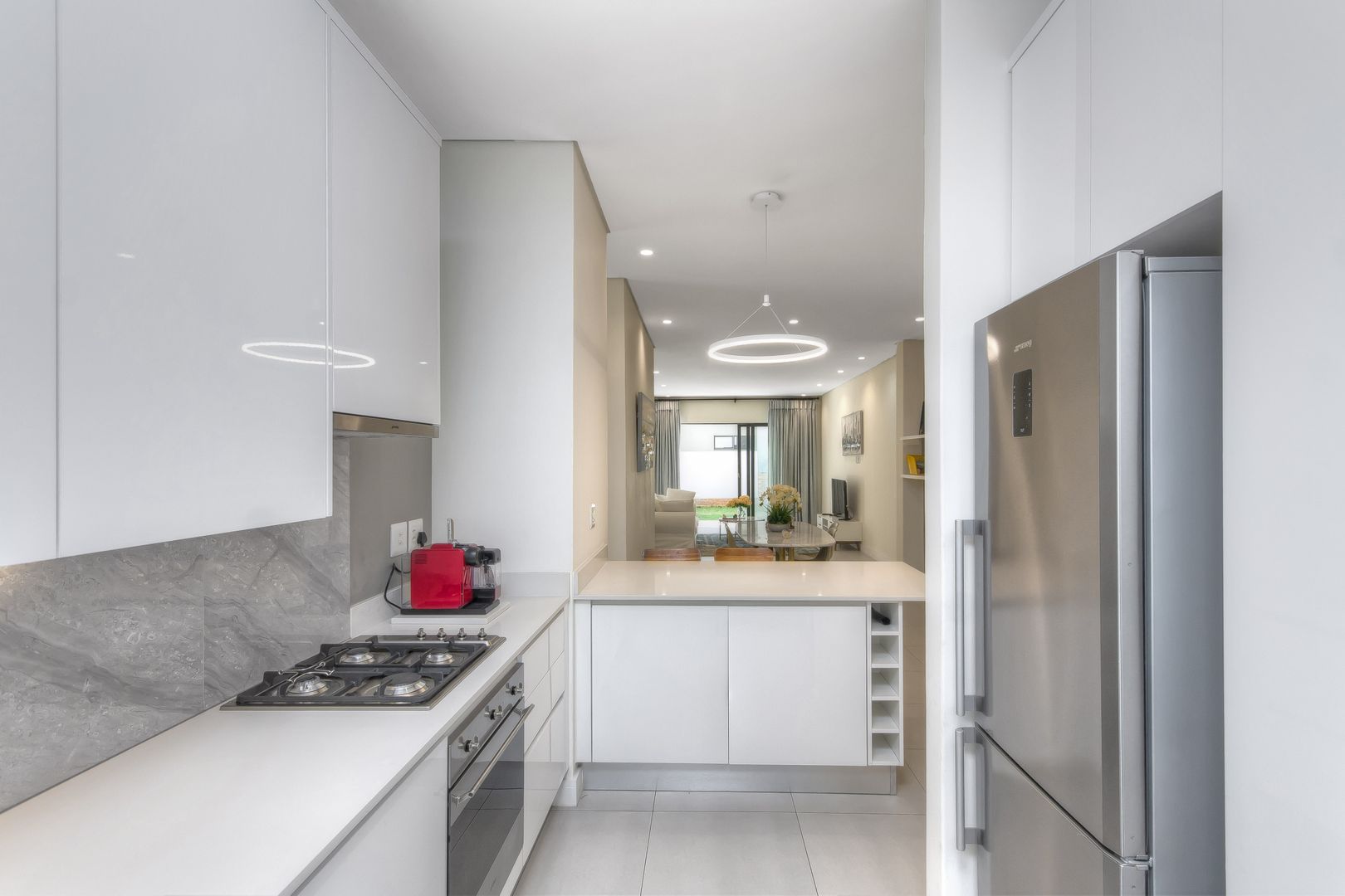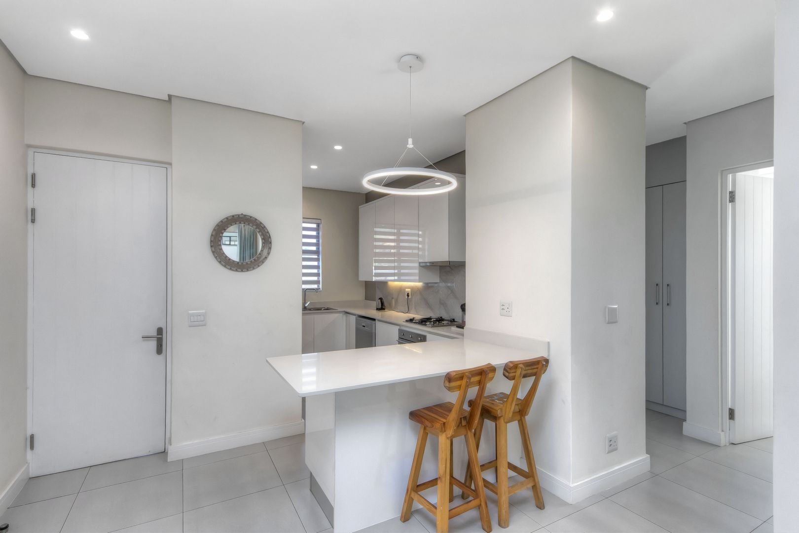 The property boasts modern finishes with a double volume ceiling. Place for 3 appliances. There is a lovely kitchen, lounge/dining area, patio, garden, two bedrooms, two bathrooms, full-time security guard. and groundskeeper. Please note that each unit has got one open parking and one carport parking.