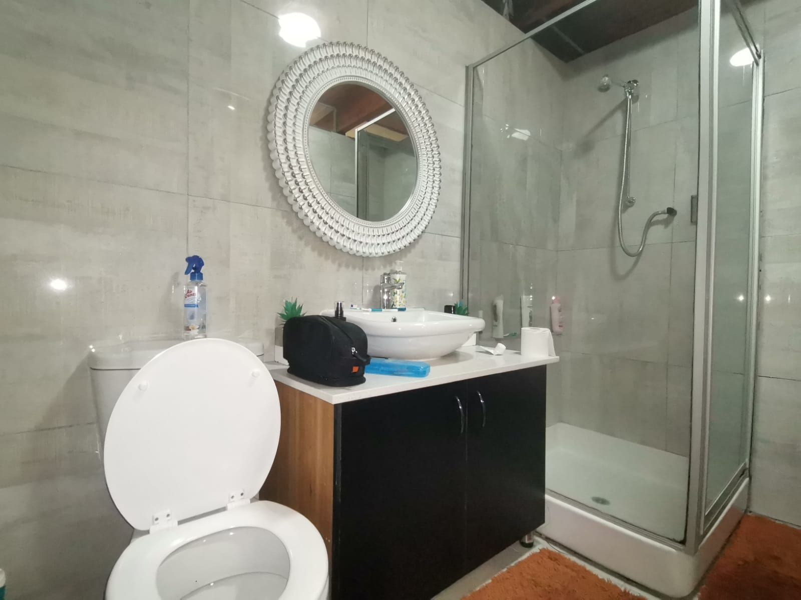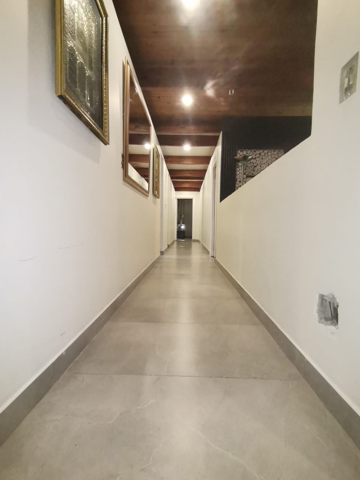 Down the passage are two well-appointed bathrooms—one with a shower, toilet, and basin, and the other with a large bath and basin.