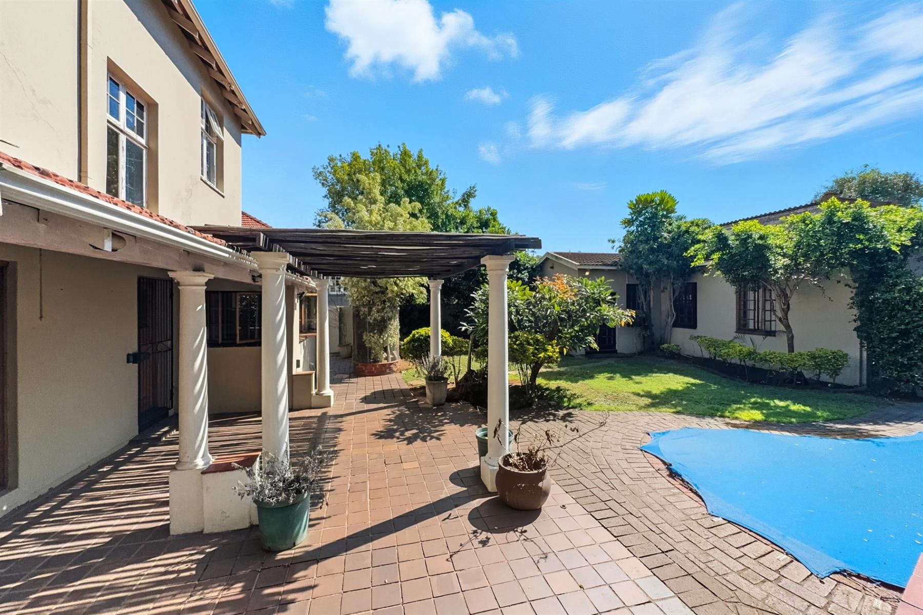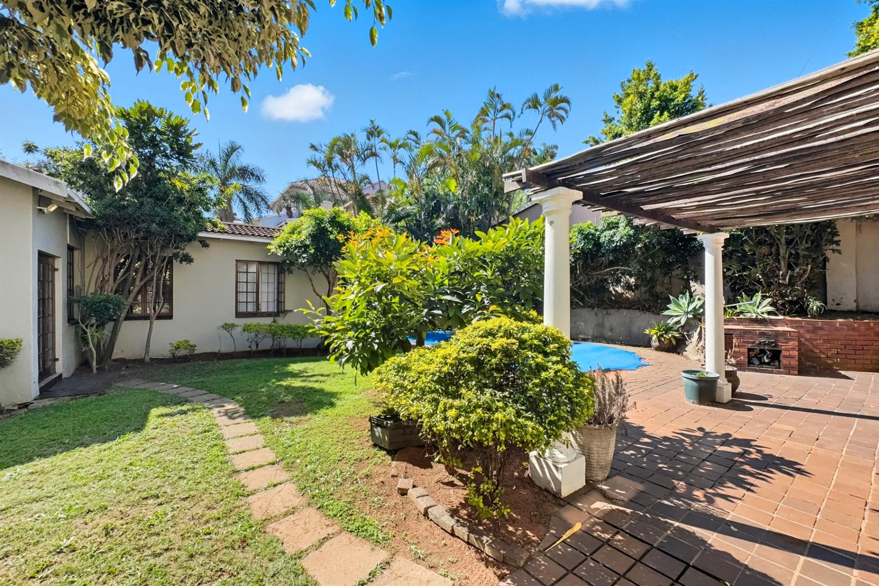 Outdoors you’ll find a sparkling pool, built-in braai, and a self-contained cottage with a bedroom, lounge, and kitchenette.