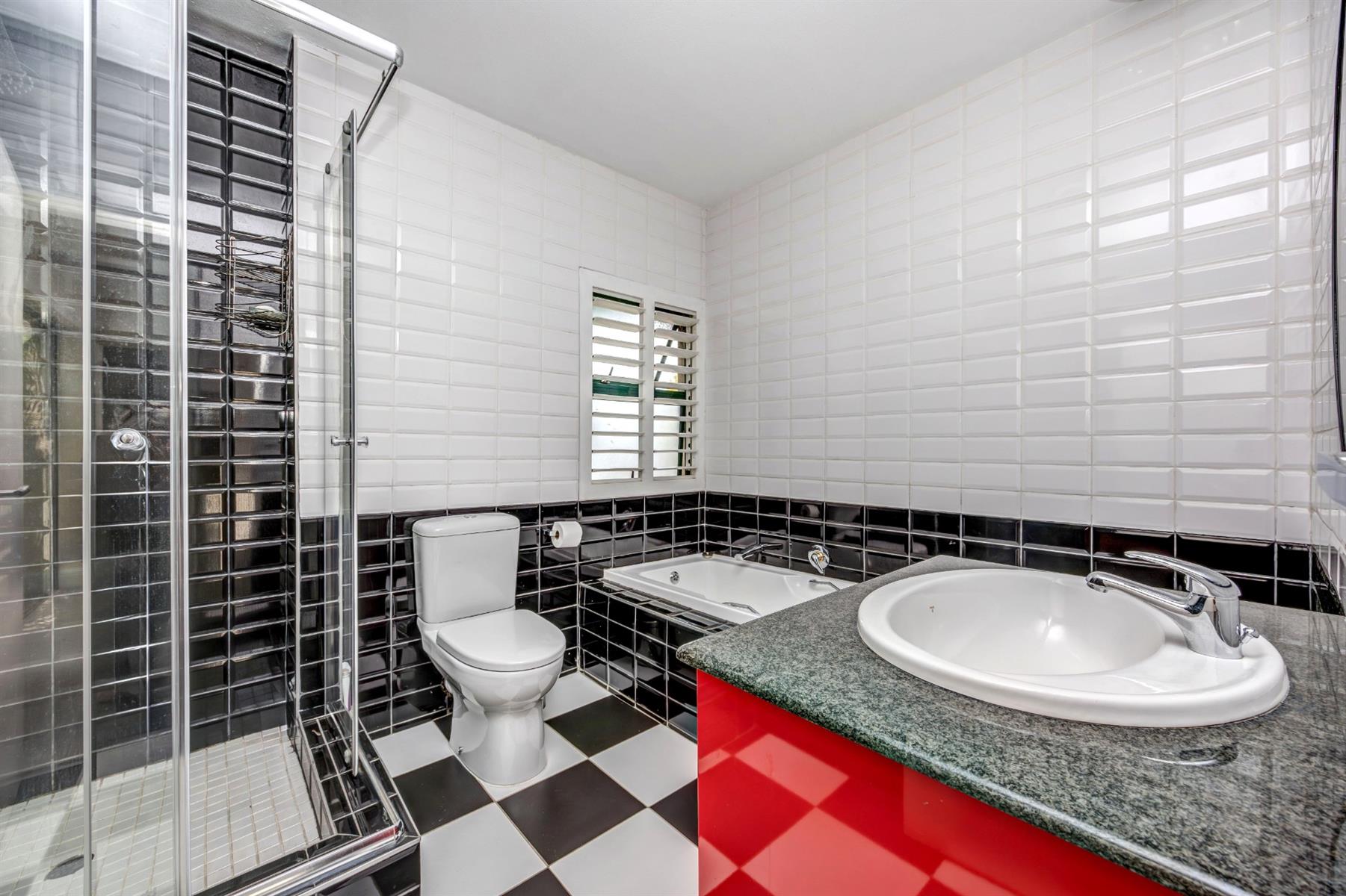 Both the main and second bedrooms flow onto an airy balcony overlooking the garden, and both are equipped with air-conditioning. The second bathroom adds a modern and playful touch, enhancing the home’s unique personality.