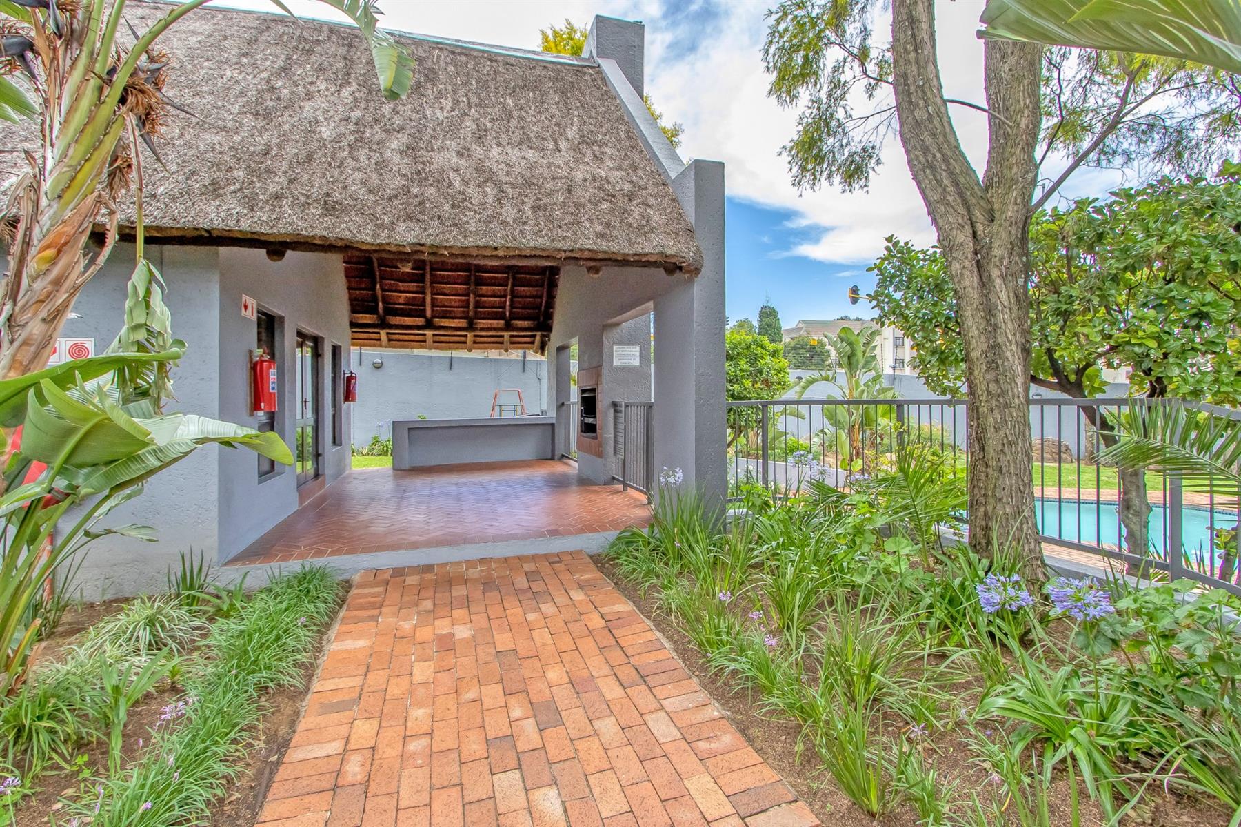 The thatched clubhouse is both inviting and functional, offering a fenced swimming pool, beautifully landscaped gardens, a jungle gym for the little ones, an undercover braai, and a roomy indoor area with a generous bar—great for relaxed entertaining.
