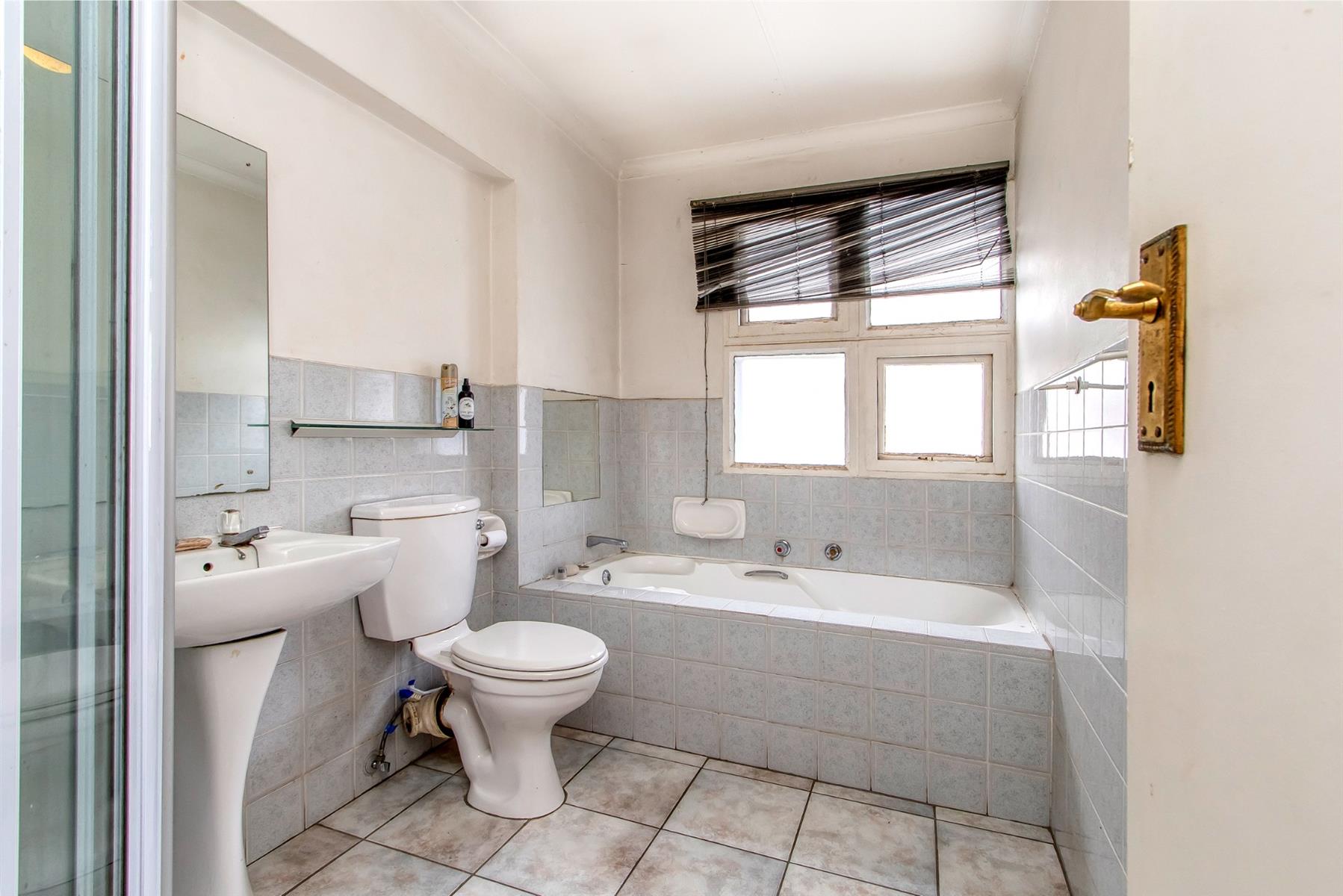 The main bathroom is well-proportioned and conveniently laid out, featuring a shower, bath, toilet, and basin. Fully tiled throughout, it is complemented by windows that allow in natural light, creating a bright and practical space.