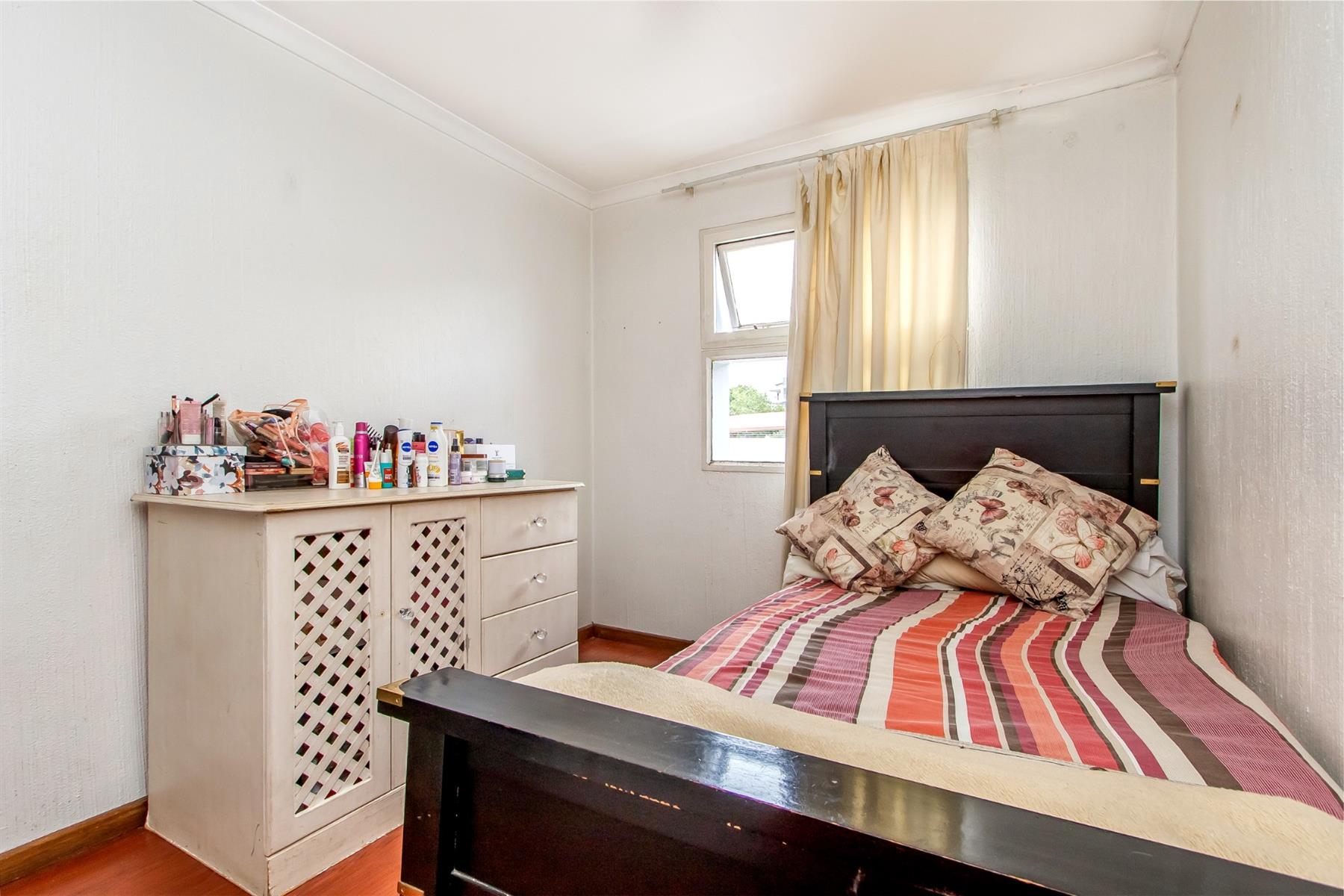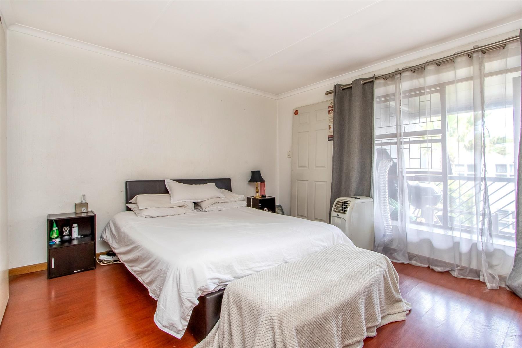 The second bedroom is neatly presented with built-in cupboards and matching laminate flooring, making it ideal as a guest bedroom, child’s room, or home office.