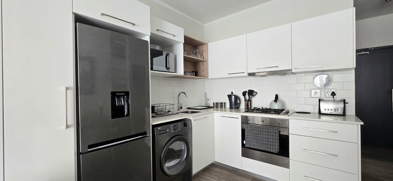 Situated in a modern, recently built apartment block, the property boasts contemporary finishes throughout, complemented by elegant, brand-new furniture. The layout offers two spacious bedrooms comfortably sleeping four, and two bathrooms for extra convenience. The open-plan living area flows onto a large balcony with a built-in braai – perfect for relaxing or showing off your braai skills after a day at the beach.