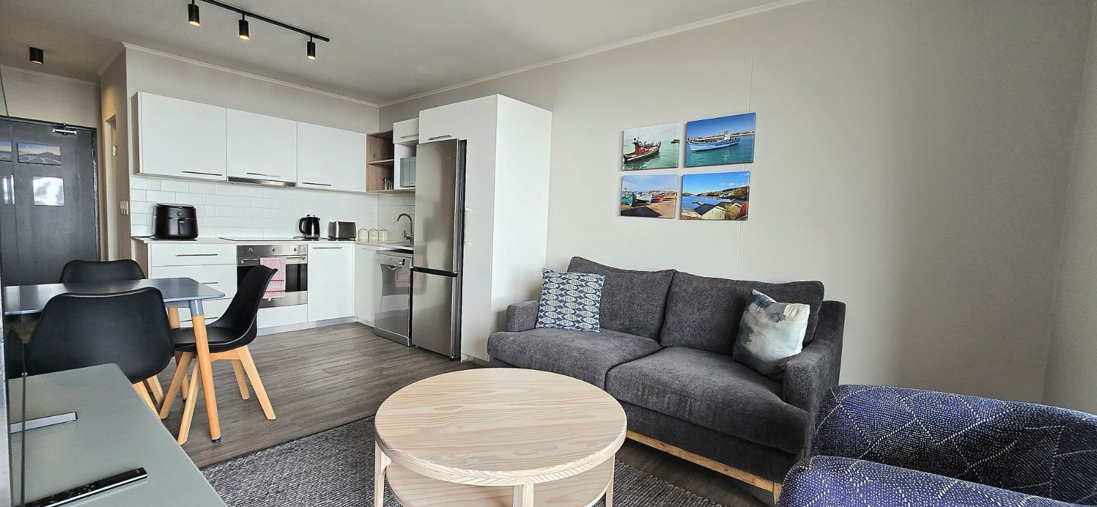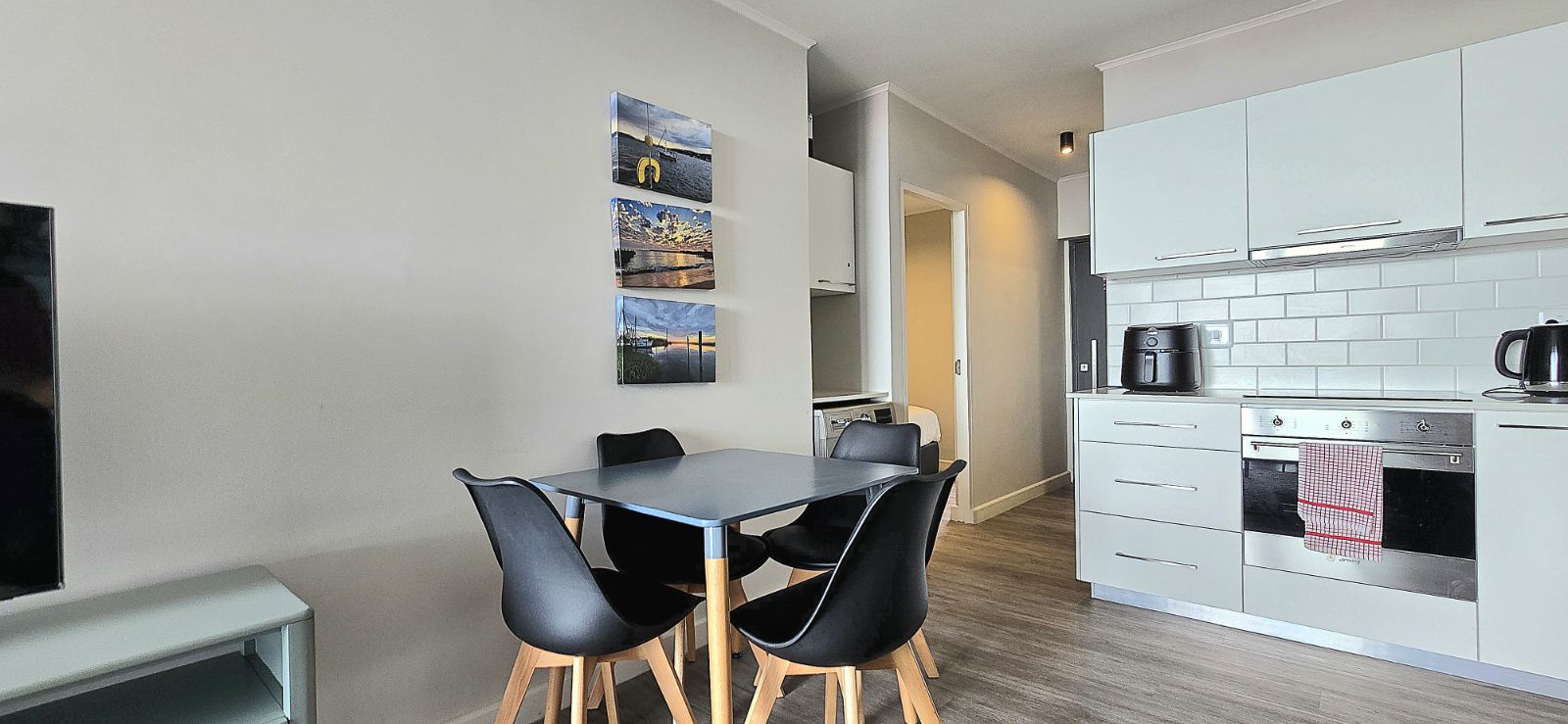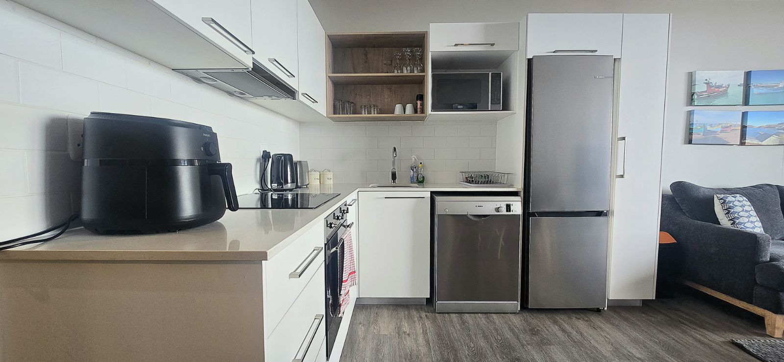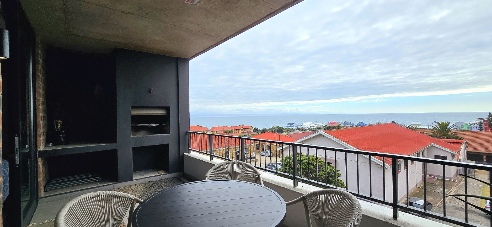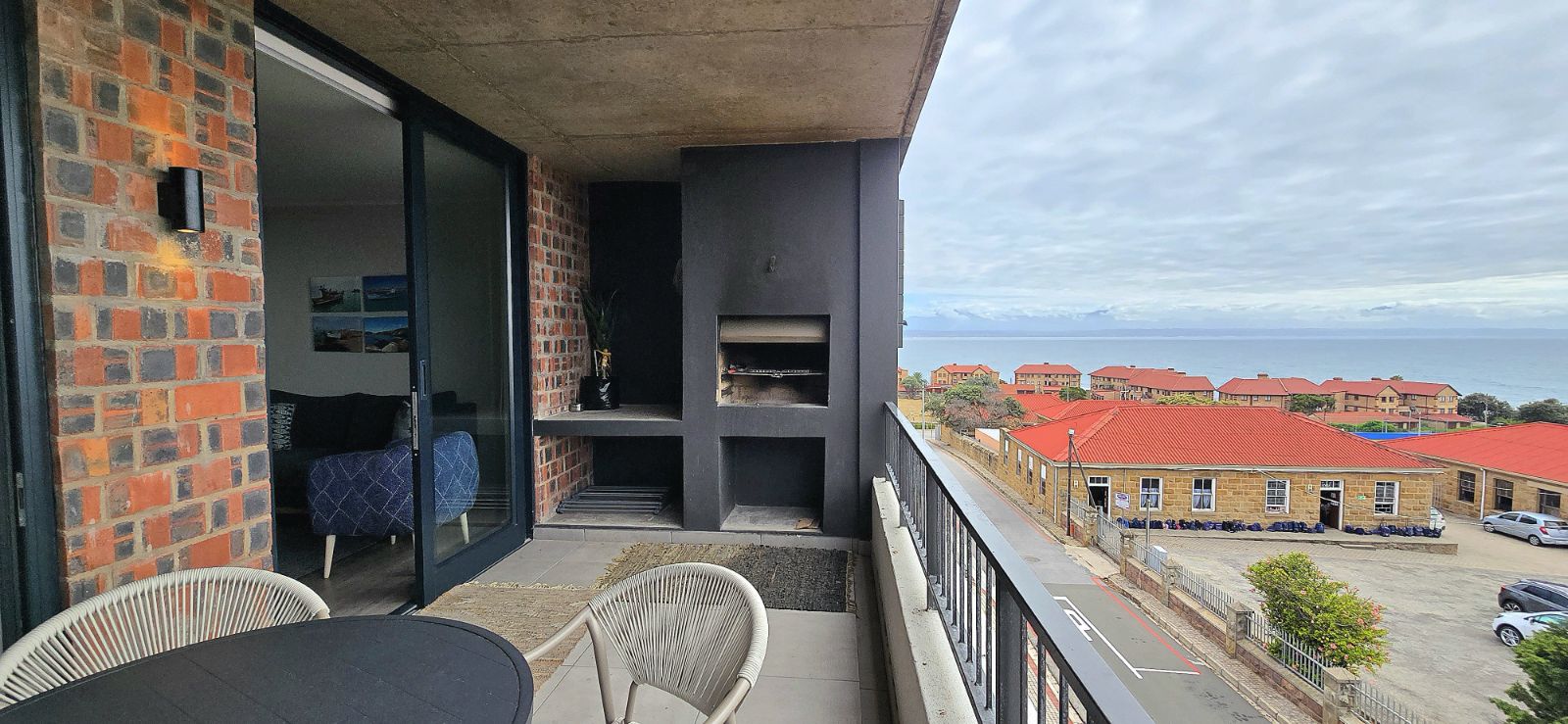 The apartment features contemporary finishes throughout, complemented by elegant, brand-new furniture. The thoughtfully designed layout offers two spacious bedrooms comfortably accommodating up to four guests, along with two modern bathrooms for added convenience. The open-plan living and dining area flows seamlessly onto a private balcony with a built-in braai, where elevated sea views create the perfect setting for relaxed coastal entertaining.
