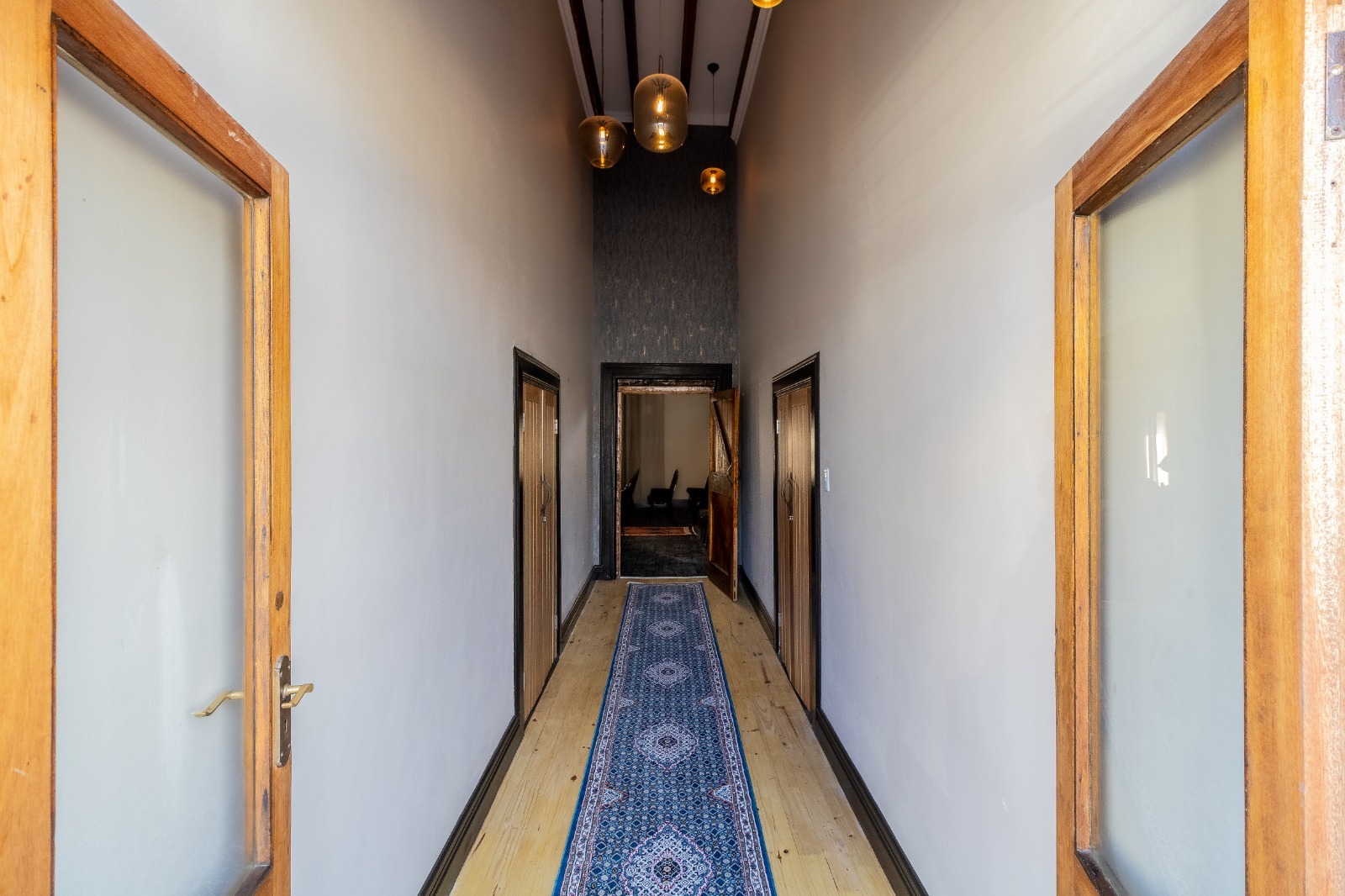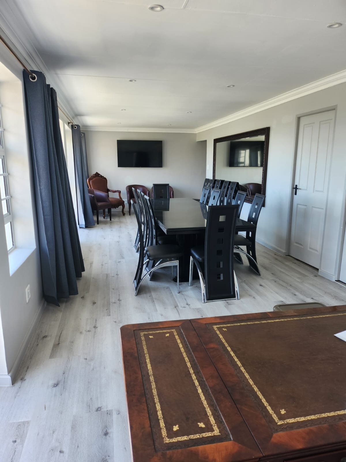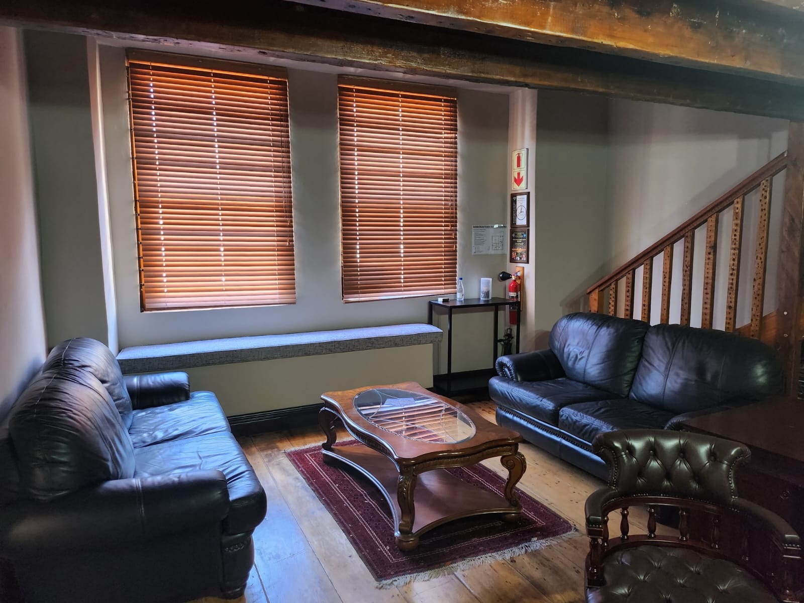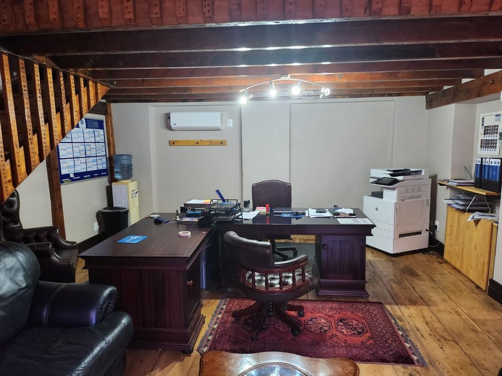 The main building boasts street frontage, commanding attention with its historical facade. Inside, two spacious offices adorned with loft spaces flank the main entrance corridor, enveloping occupants in an atmosphere of warmth and hospitality. The ground floor presents an expansive 85m2 open area, currently serving as a chapel with double-volume ceilings, but ripe for transformation into versatile office space or a trendy restaurant. Ascend to the 32m2 mezzanine, offering panoramic views of Mossel Bay harbor—a perfect setting for a wellness office, coffee shop, or lounge.