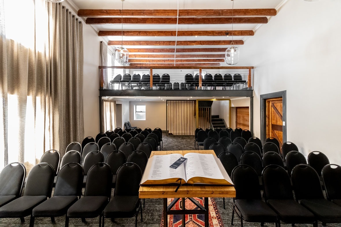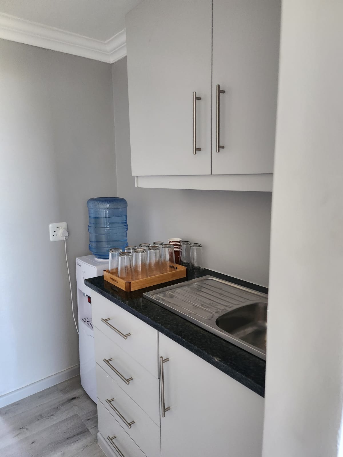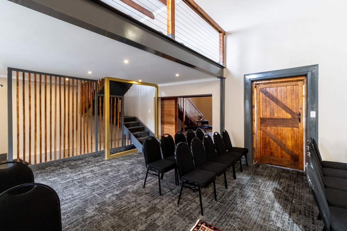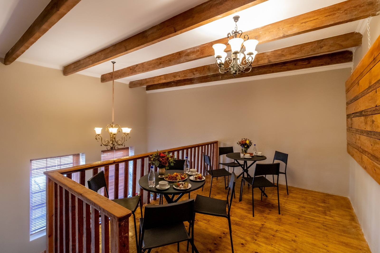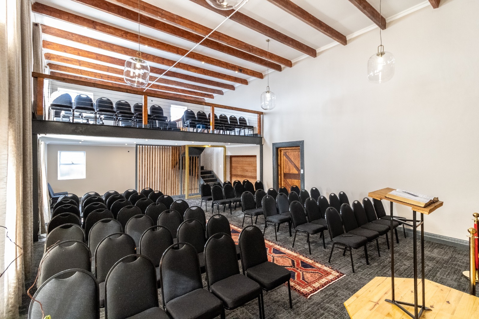 The main building boasts street frontage, commanding attention with its historical facade. Inside, two spacious offices adorned with loft spaces flank the main entrance corridor, enveloping occupants in an atmosphere of warmth and hospitality. The ground floor presents an expansive 85m2 open area, currently serving as a chapel with double-volume ceilings, but ripe for transformation into versatile office space or a trendy restaurant. Ascend to the 32m2 mezzanine, offering panoramic views of Mossel Bay harbor—a perfect setting for a wellness office, coffee shop, or lounge.