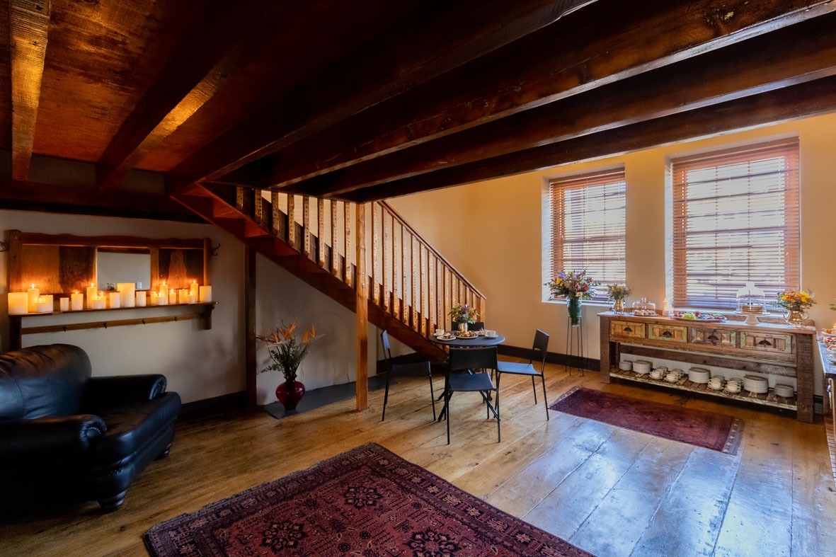 As you step into the main building, the rich character of the past greets you with original yellow wood floors, elegantly restored to their former glory. The exposed stone walls whisper stories of days gone by, adding depth and charm to the space. Located in the heart of the upscale commercial district on Bland Street, this property offers two separate buildings, each exuding its own unique appeal.
