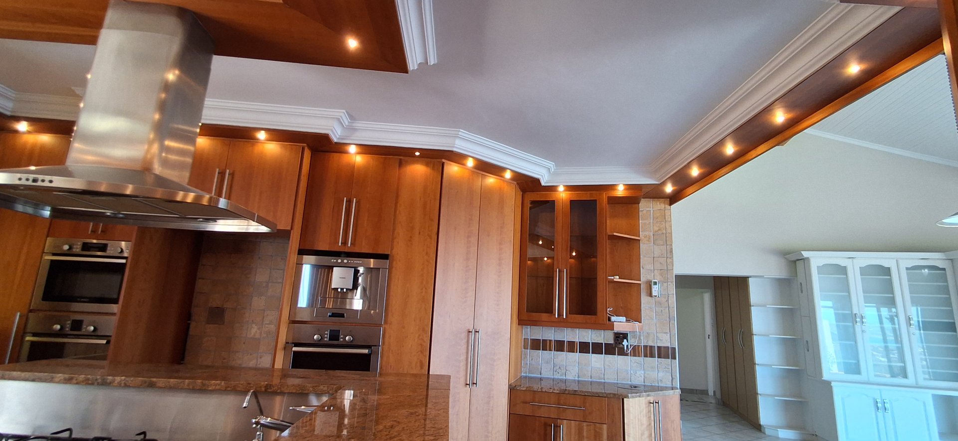 The expansive open-plan living areas flow seamlessly into a kitchen that would satisfy the most discerning chef. Thoughtfully equipped for large-scale hosting, the culinary space features: