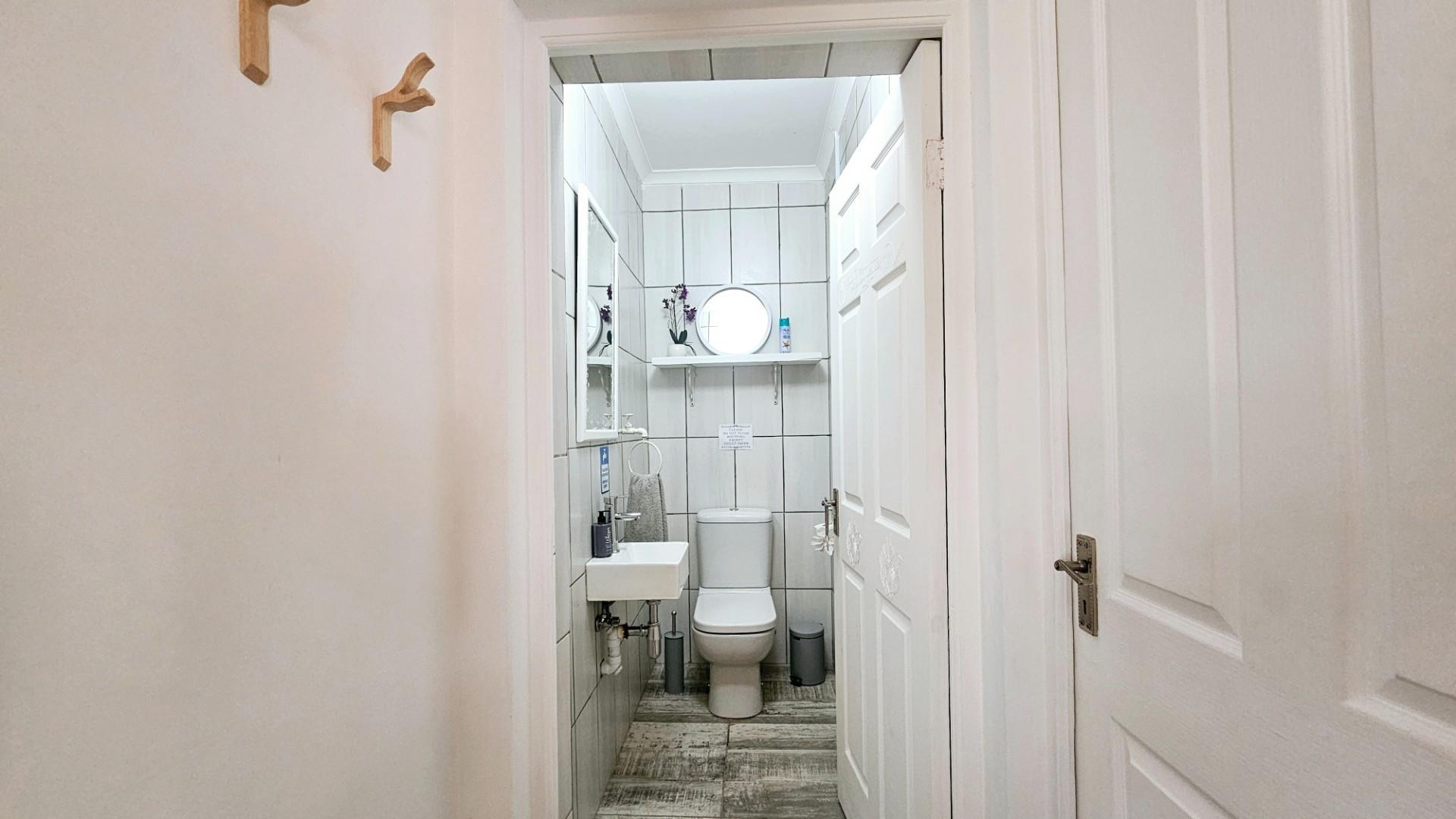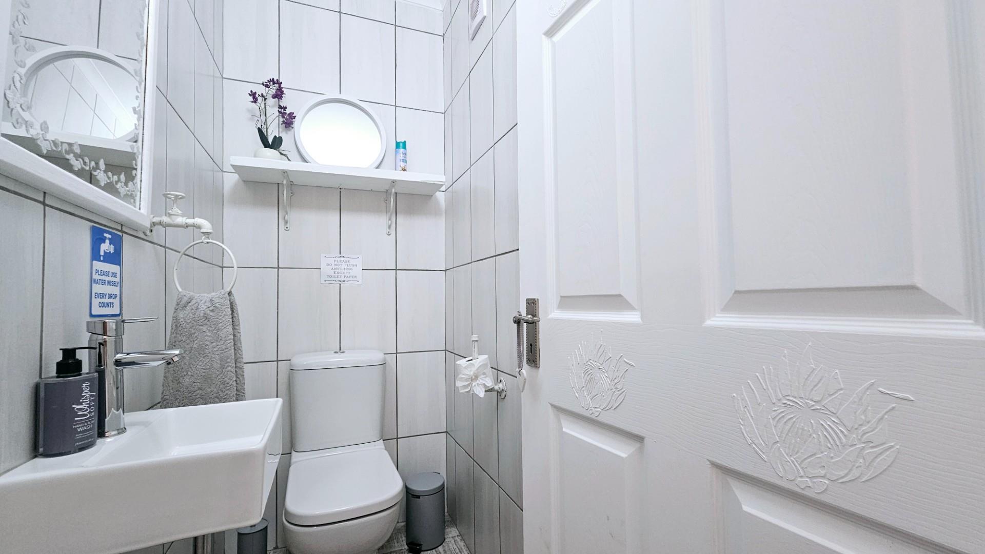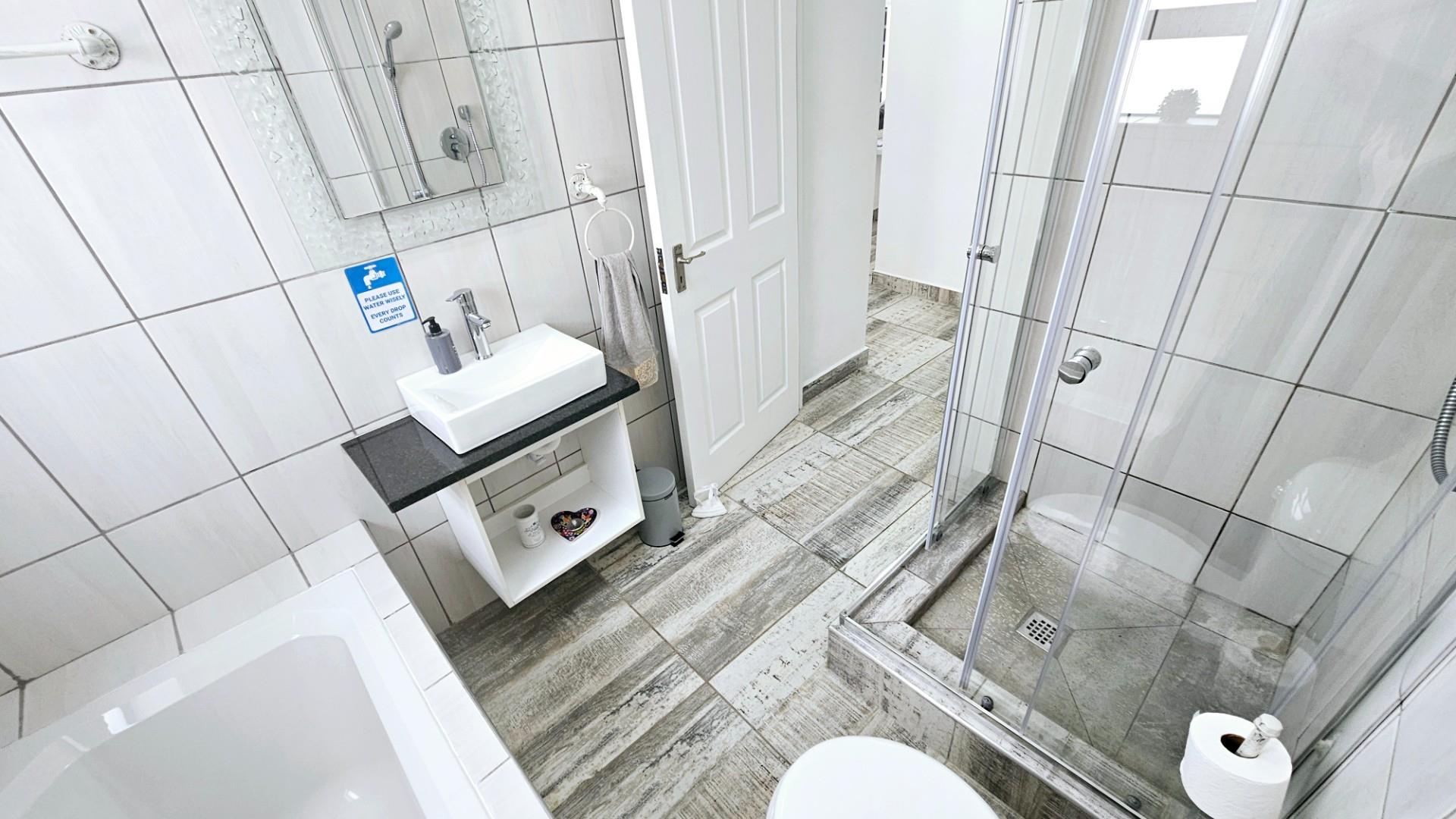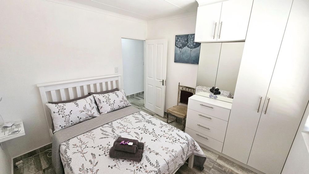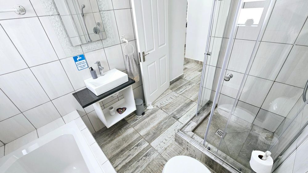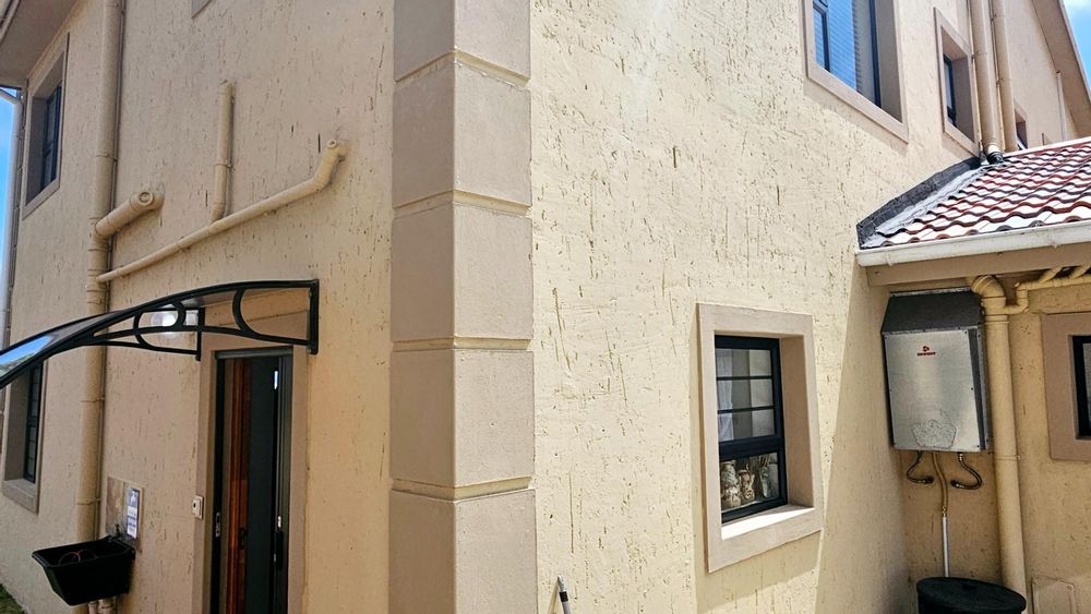 The home features three spacious bedrooms and two modern bathrooms, as well as a guest toilet conveniently located on the ground floor. The open-plan kitchen and living area create a warm and welcoming atmosphere, leading out to a covered patio with a built-in braai and a private, pet-friendly garden ideal for up to two small pets. Upstairs, a second covered patio is accessible from two of the bedrooms and offers lovely ocean views — the perfect setting to relax and enjoy Mossel Bay’s beautiful coastal climate.