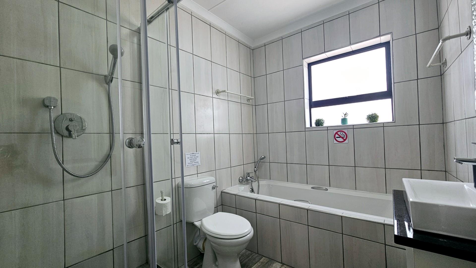 The property includes a single garage with an additional exclusive-use parking space, and there is the option to install a shade net for extra covered parking. Practical additions include a stairway storage cupboard, additional hallway cupboards, and a laundry point in the garage. The home is fitted with a gas geyser and gas stove, providing energy efficiency and cost savings. Levies are low at only R1,400 per month, and include water usage.