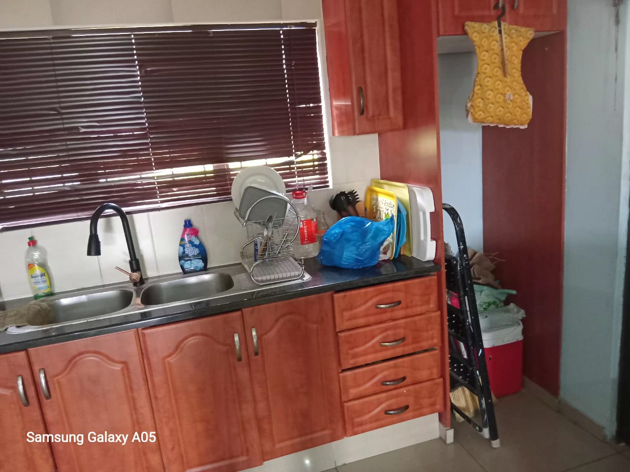 This is very lovely fully tiled property nestled in a quiet suburb. Although security cannot be guaranteed anywhere; but for the way it is built and situated that was taken into consideration in a gated estate-like fashion. The property has aluminium windows and doors with burglar bars and an alarm system. The perimeter of this property is walled and fenced with palisade rails. The yard is huge to accommodate any future developments. It is fully tiled with two full bathrooms, main en-suite. All the bedrooms have built in units. It has a double garage with an inside door leading into the house through the courtyard. This is a very well priced property taking into account of its location and convenience to all amenities. It needs a little TLC. Call for viewing before its too late.