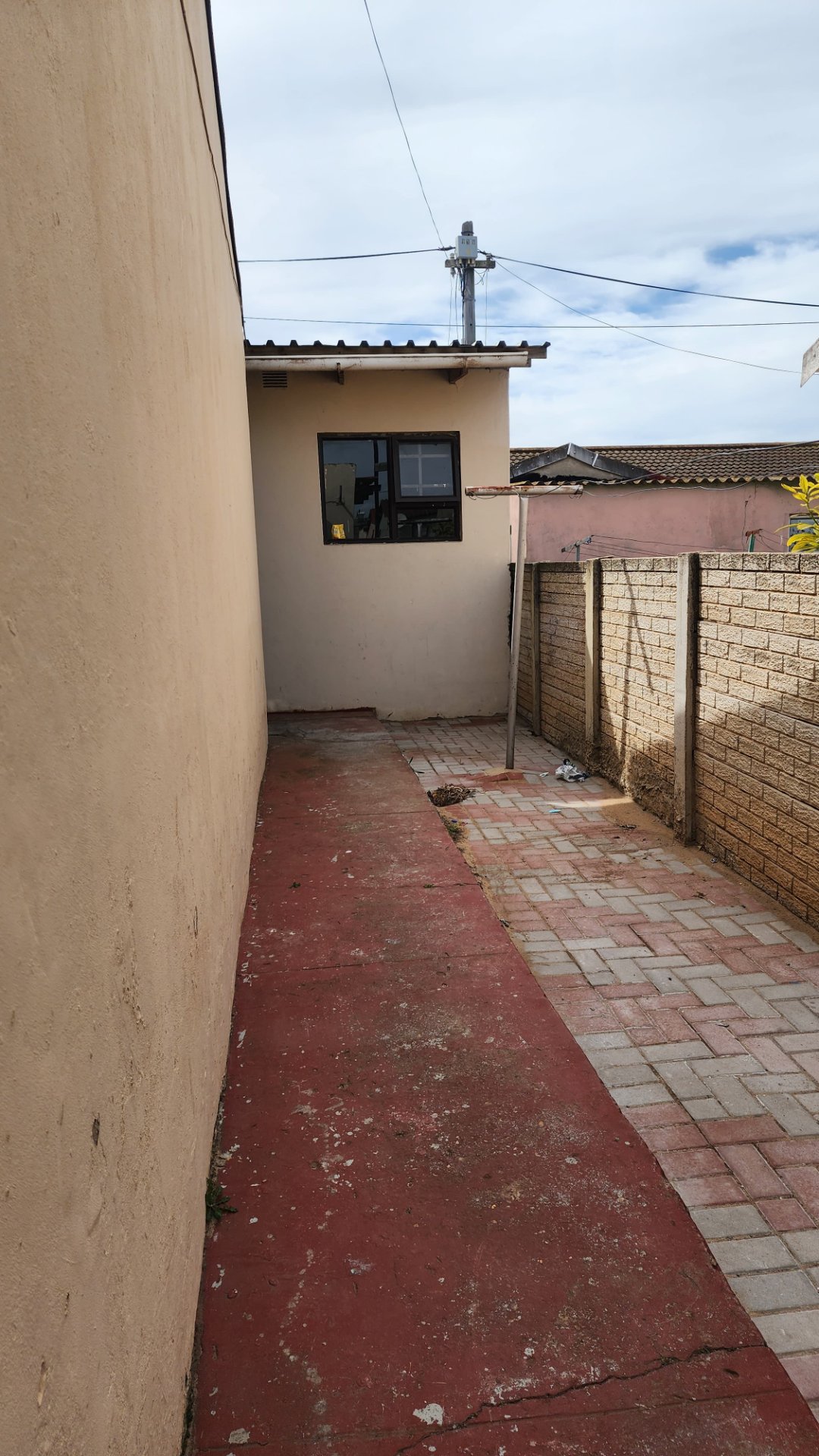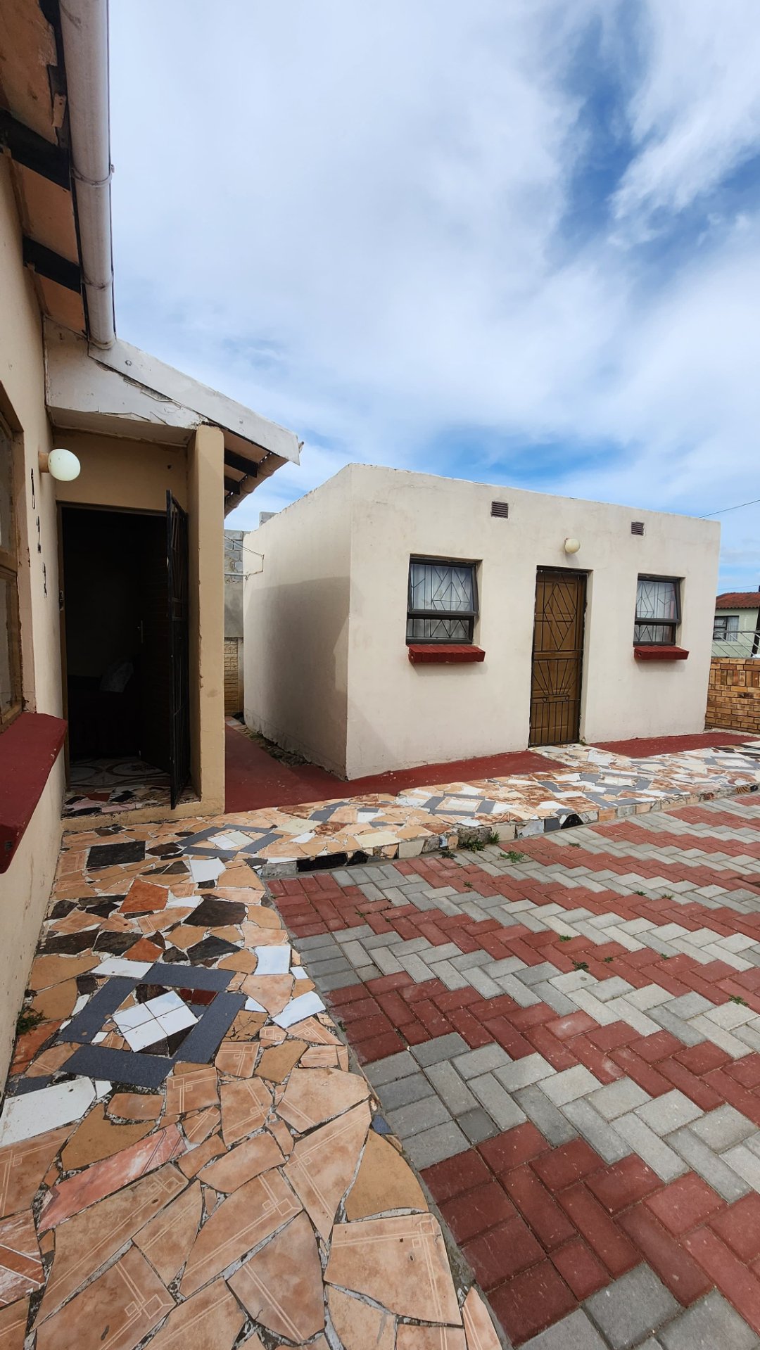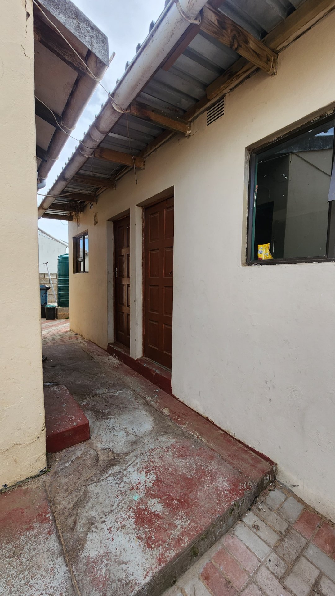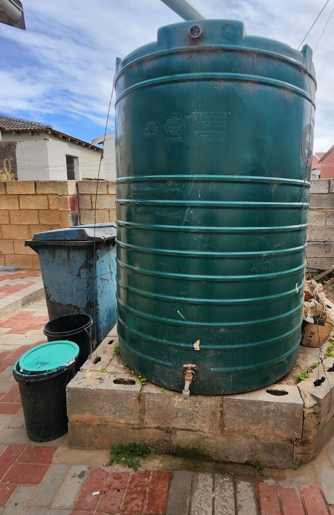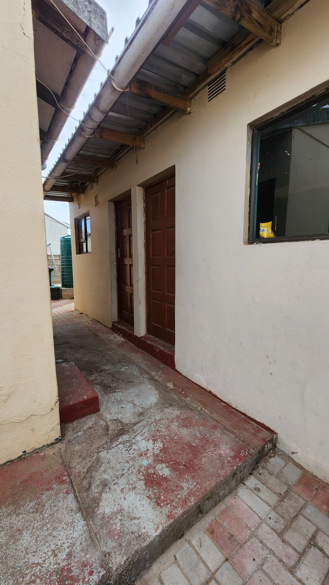 Three outside rooms , shared toilet and a Jojo tank. Yard is well paved all around . Outside rooms are income generation R3500 a month, they all have separate electricity meters