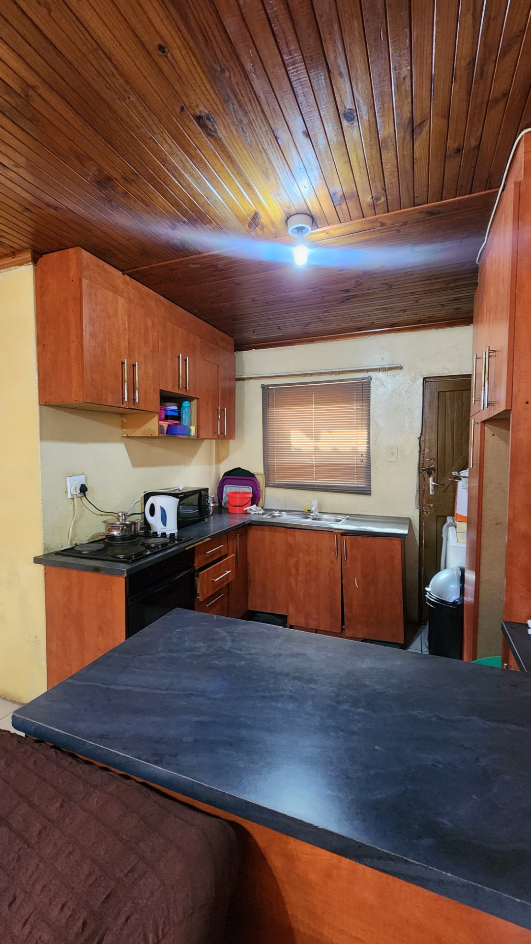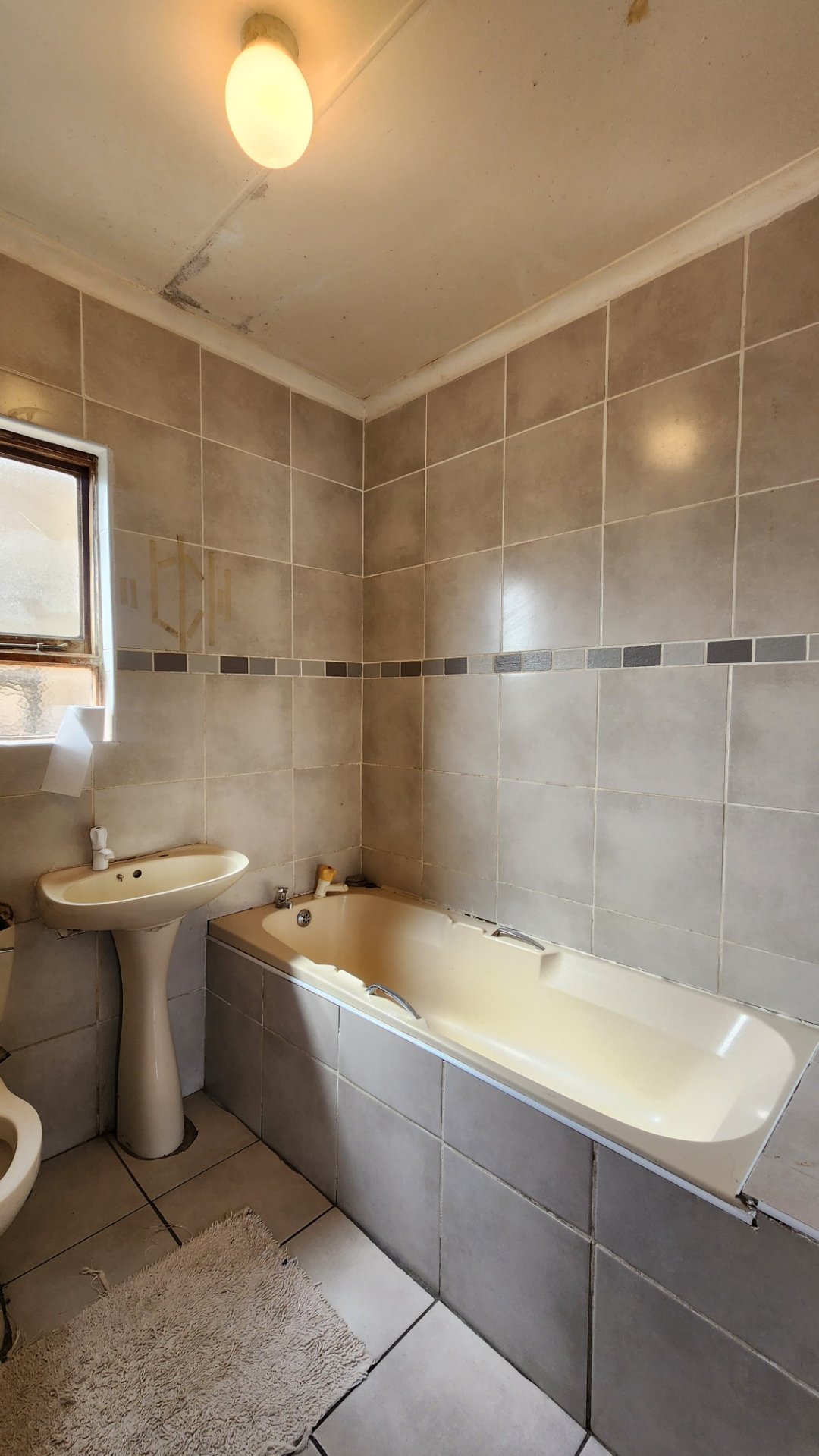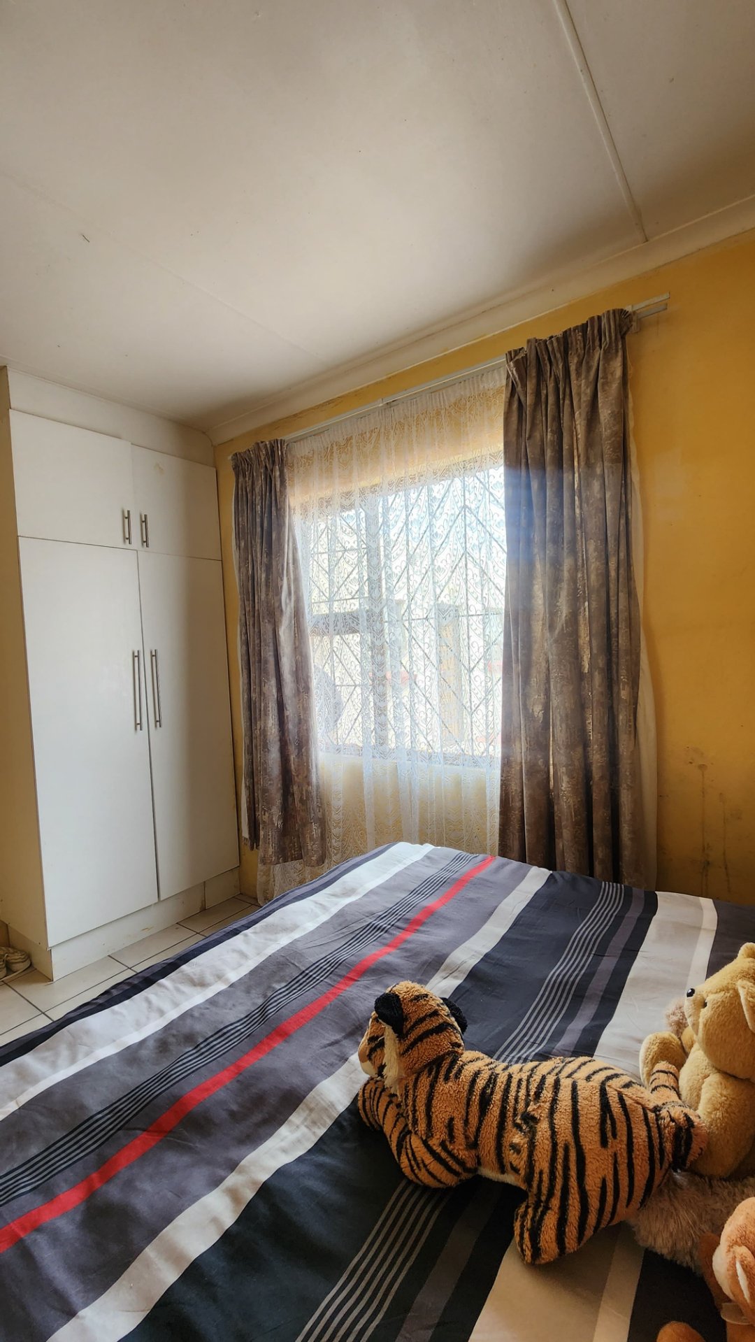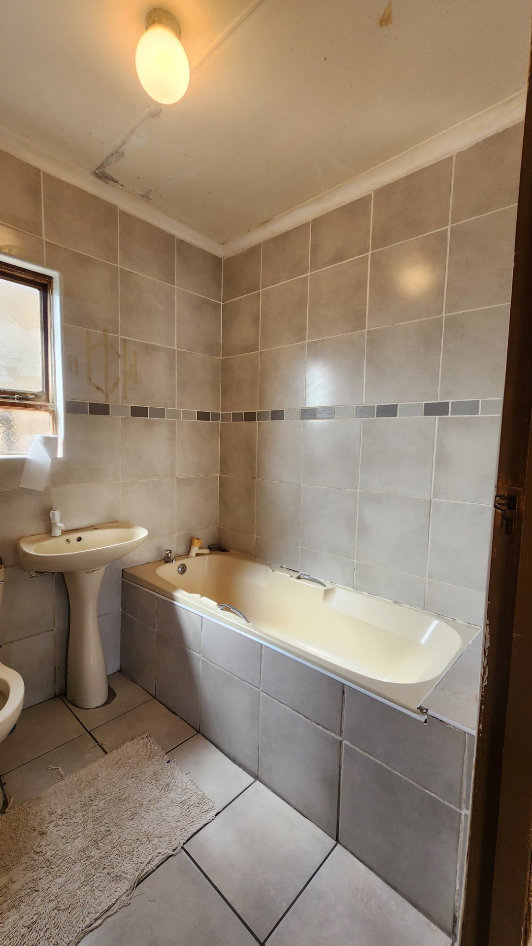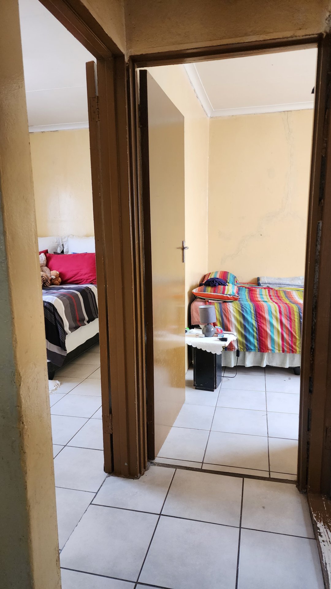 Three outside rooms , shared toilet and a Jojo tank. Yard is well paved all around . Outside rooms are income generation R3500 a month, they all have separate electricity meters